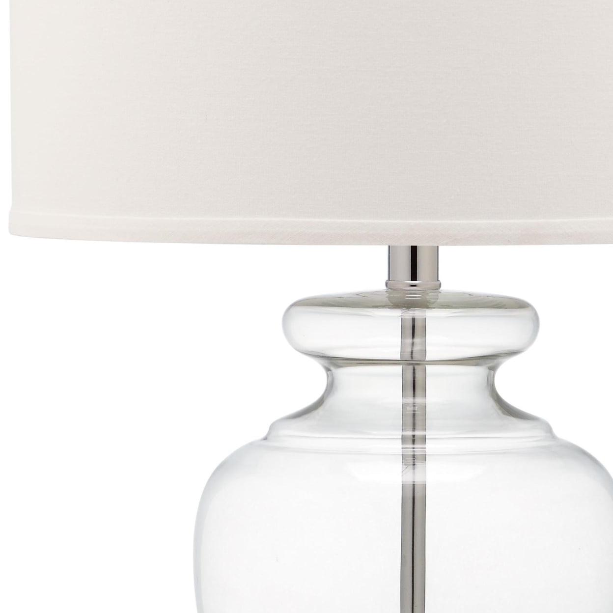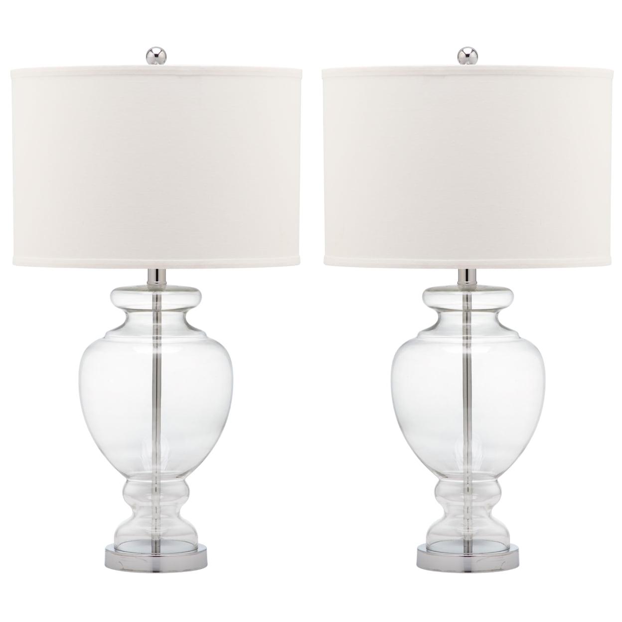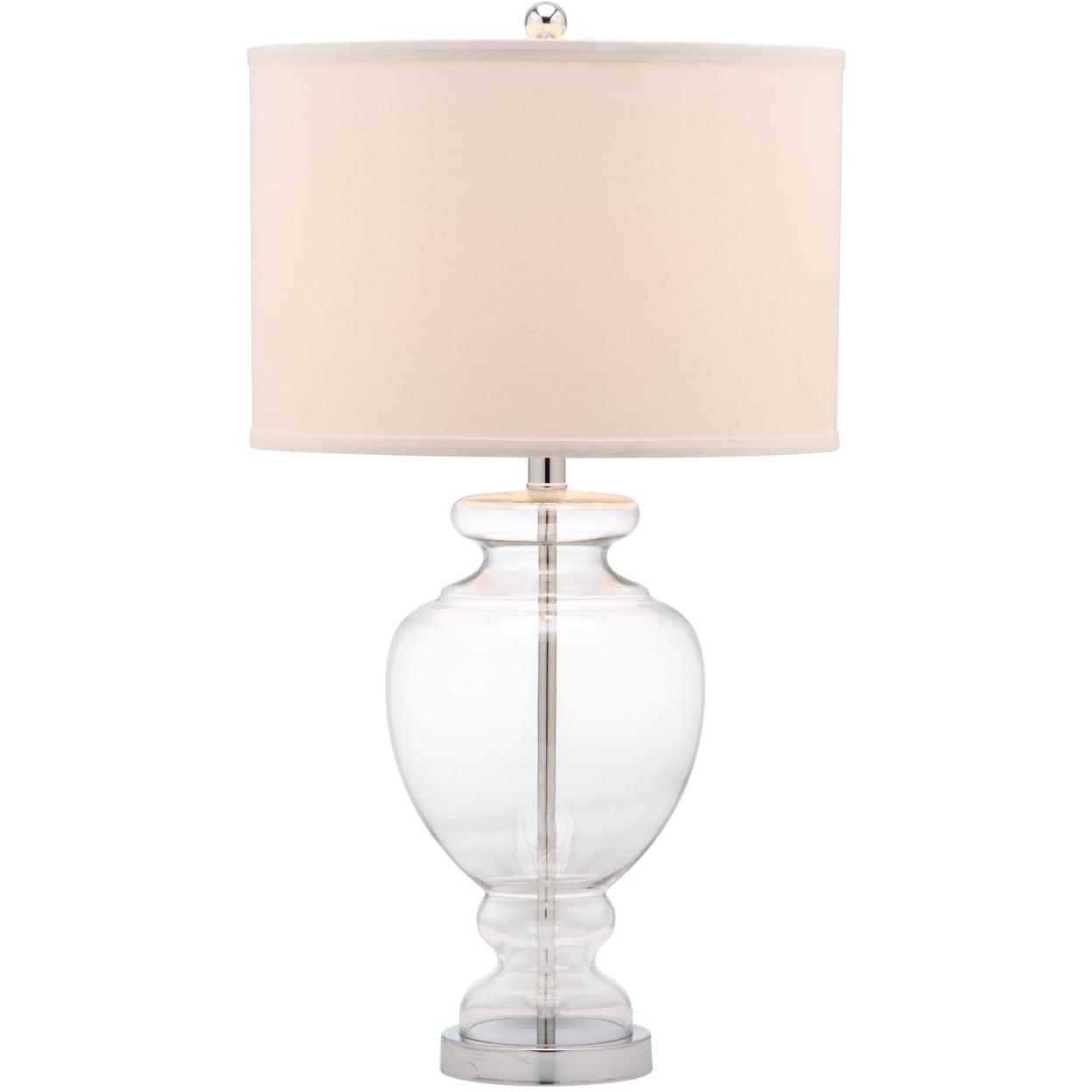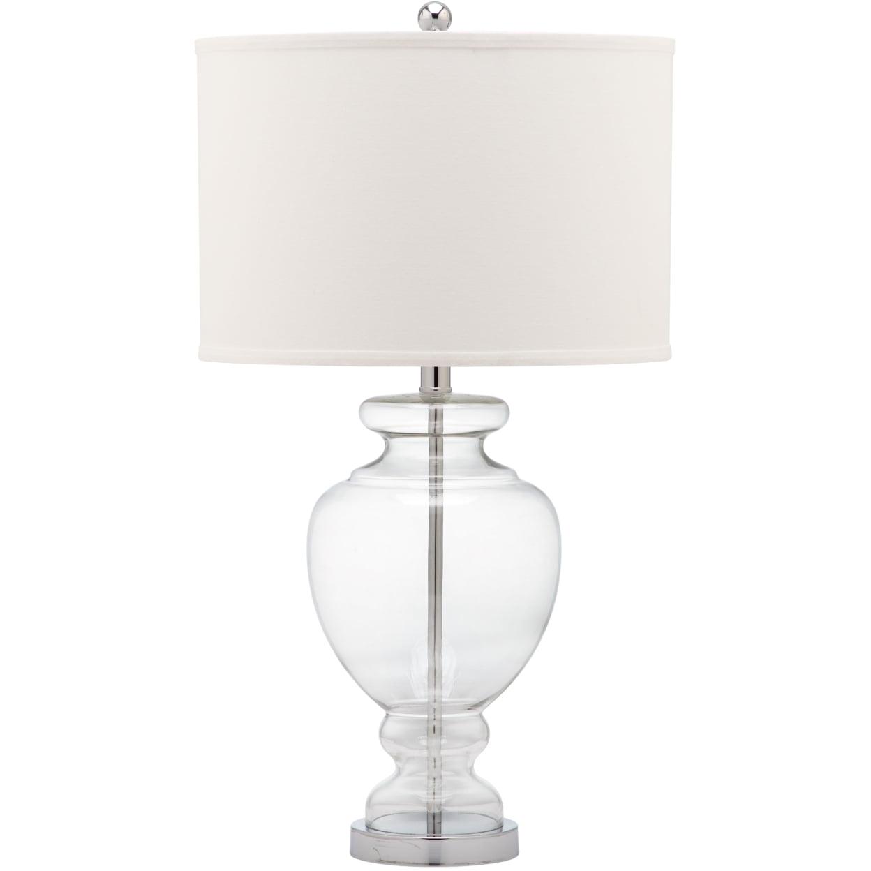 SAFAVIEH Morocco Glass Lamp (Set of 2) | Clear | Inspired by collectible colored glass vases and bottles, the clear glass table lamp is a perfect accessory for coastal and cottage style interiors. Silver fittings and off white cotton hardback drum shade update the look yet retain romantic vintage charm. Sold in sets of two. Begin your rug, furniture, lighting, outdoor, and home decor search and discover over 100,000 SAFAVIEH products today.