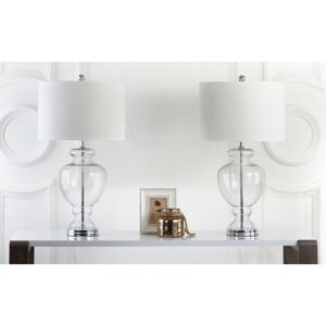 SAFAVIEH Morocco 27 in. H Solid Glam Glass Table Lamp, Clear, Set of 2