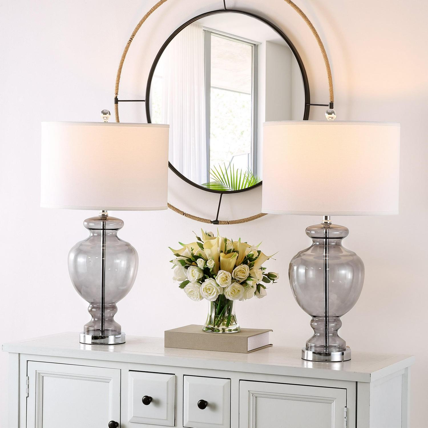 SAFAVIEH Morocco 27 in. H Solid Glam Glass Table Lamp, Smoking Grey, Set of 2