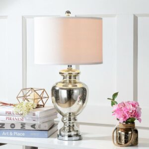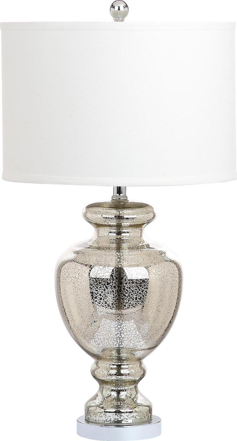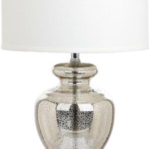 Inspired by collectible colored glass vases and bottles, the clear mercury glass table lamp is a perfect accessory for coastal and cottage style interiors. Silver fittings and off-white cotton hardback drum shade update the romantic vintage look.- Contemporary design adds a chic look to your home