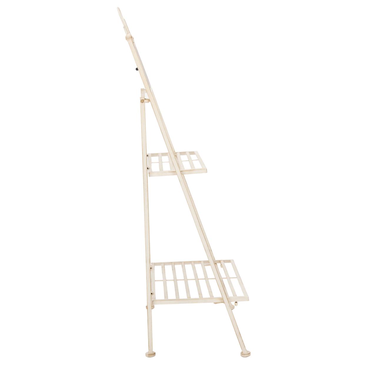 SAFAVIEH Natum 2 Tier Outdoor Patio Plant Stand, Pearl White
