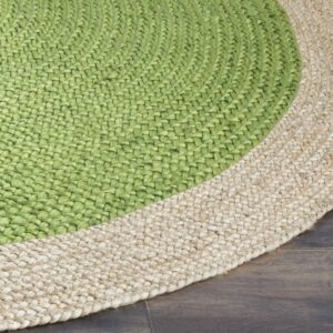 SAFAVIEH Natural Fiber Cebrail Braided Jute Area Rug, Green/Natural, 9′ x 9′ Round