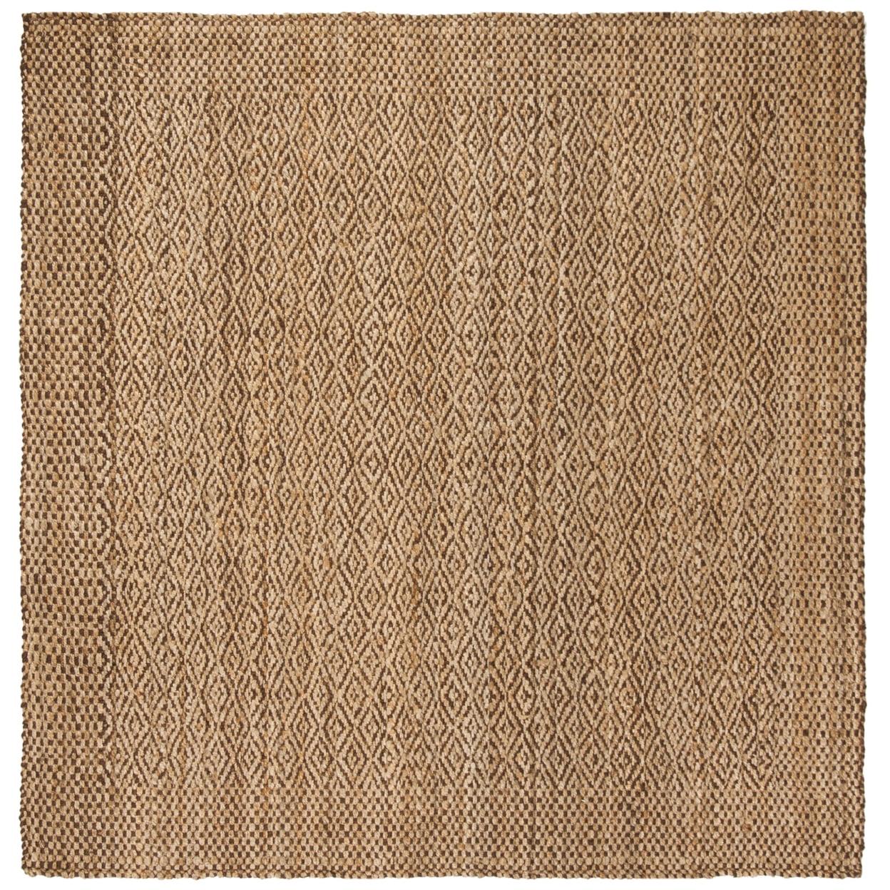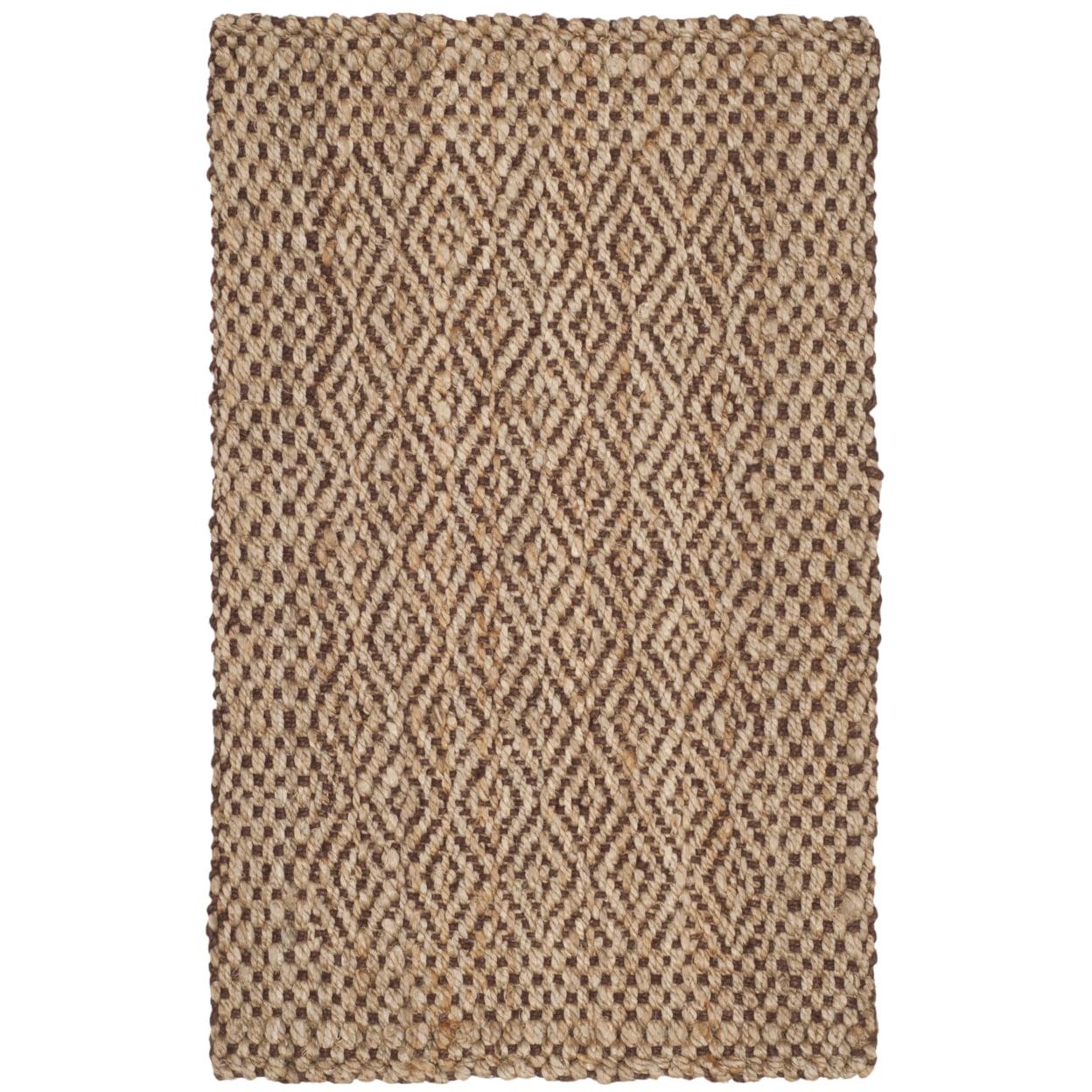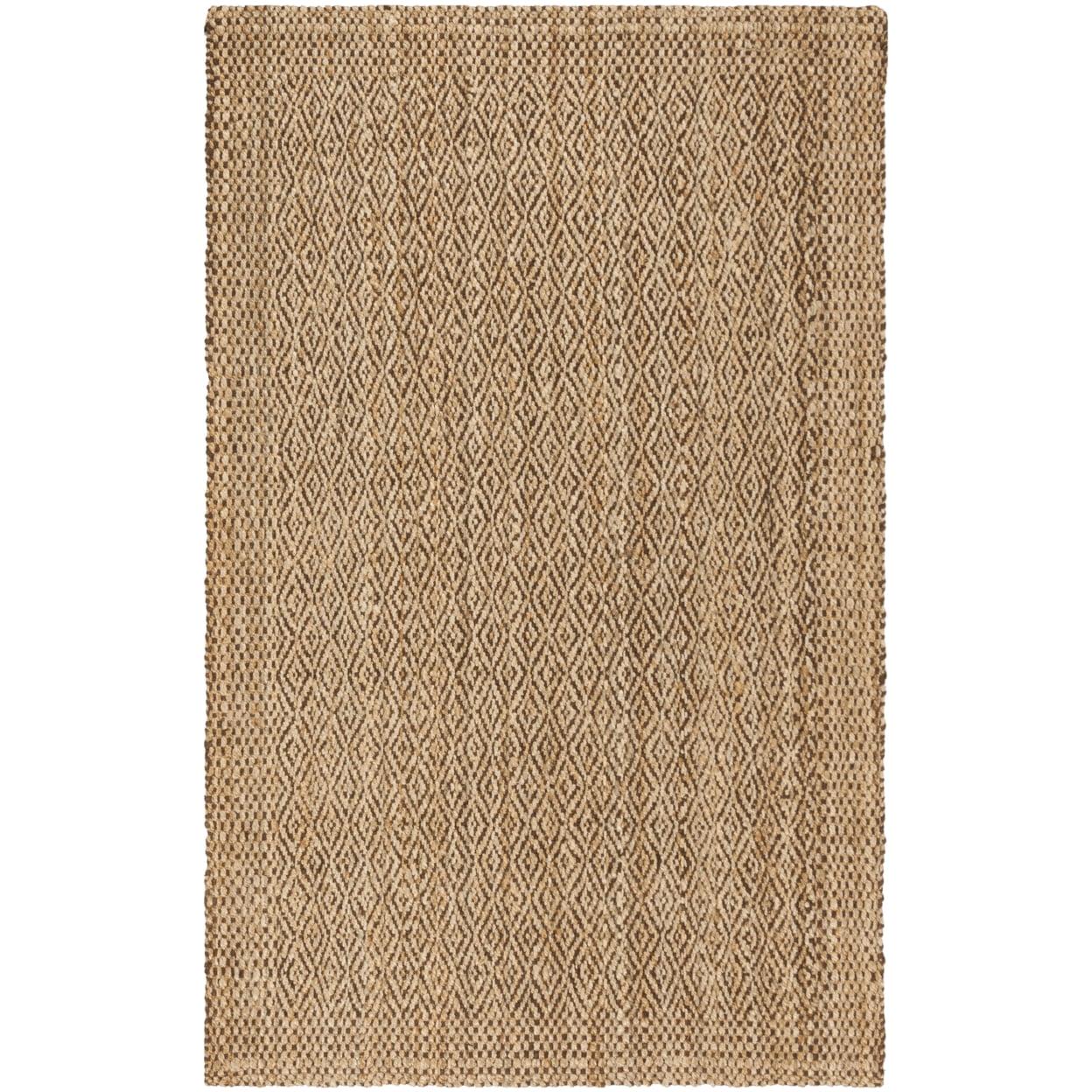 SAFAVIEH Natural Fiber NF183A Natural / Brown Rug Promoting a tranquil and organic ambiance, SAFAVIEH’s handwoven jute rug has been expertly crafted for those looking to add a carefree vibe to their home. This brown solid-colored rug will blend effortlessly with new or existing decor. Its textured fiber features an understated diamond trellis design to add visual interest to any room. Rug has an approximate thickness of 0.5 inches.