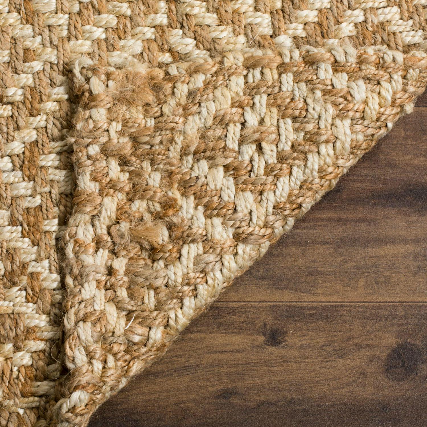 SAFAVIEH Natural Fiber Tashi Geometric Diamond Braided Jute Area Rug, Ivory/Natural, 5’x8′