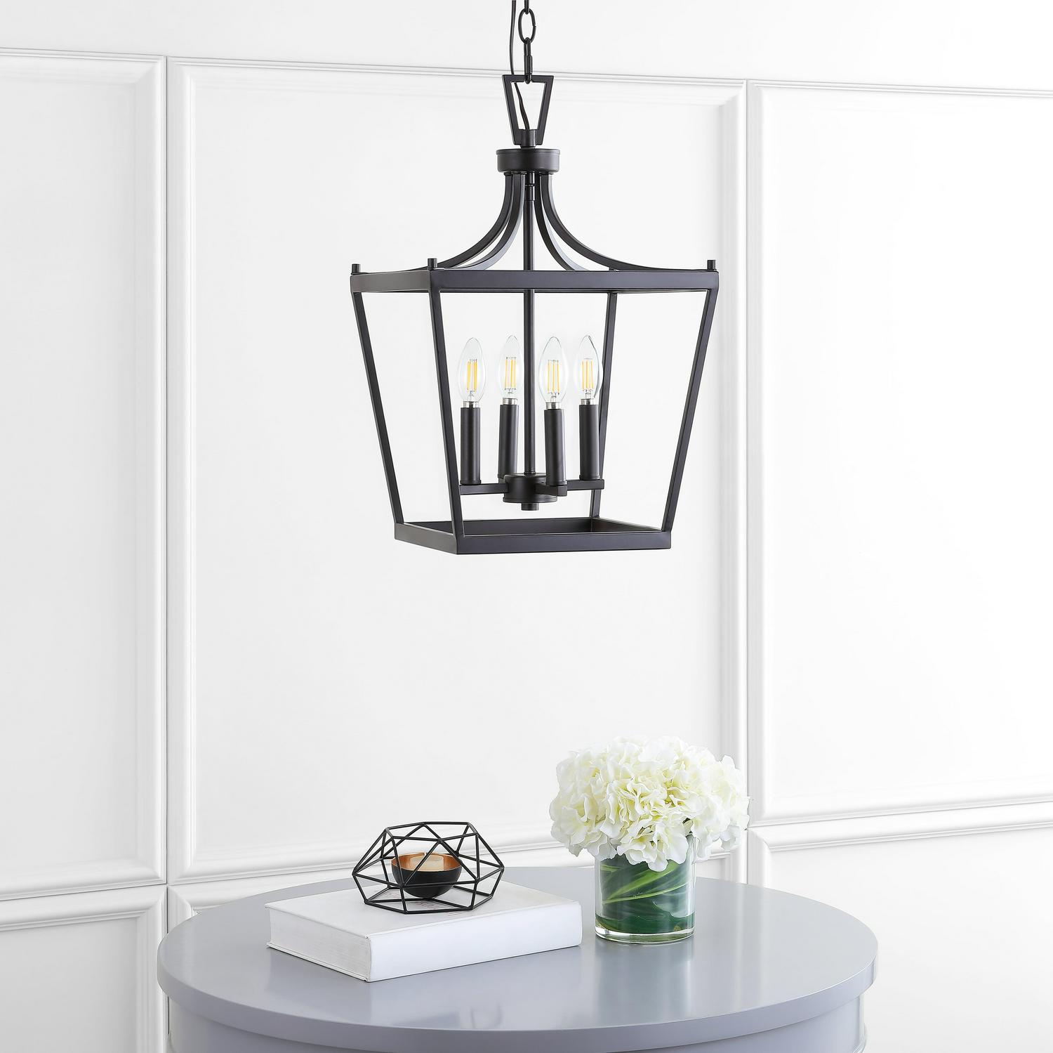 SAFAVIEH Nichi 4 Light 13 Inch Pendant | Oil Rub Bronze | Designed with style and substance, this classic pagoda style 4 light pendant elevates any interior with its new spin on the traditional lantern. An oil rubbed bronze finish highlights its metal craftsmanship, gracious curves, and suspended interior lights. Begin your rug, furniture, lighting, outdoor, and home decor search and discover over 100,000 SAFAVIEH products today.