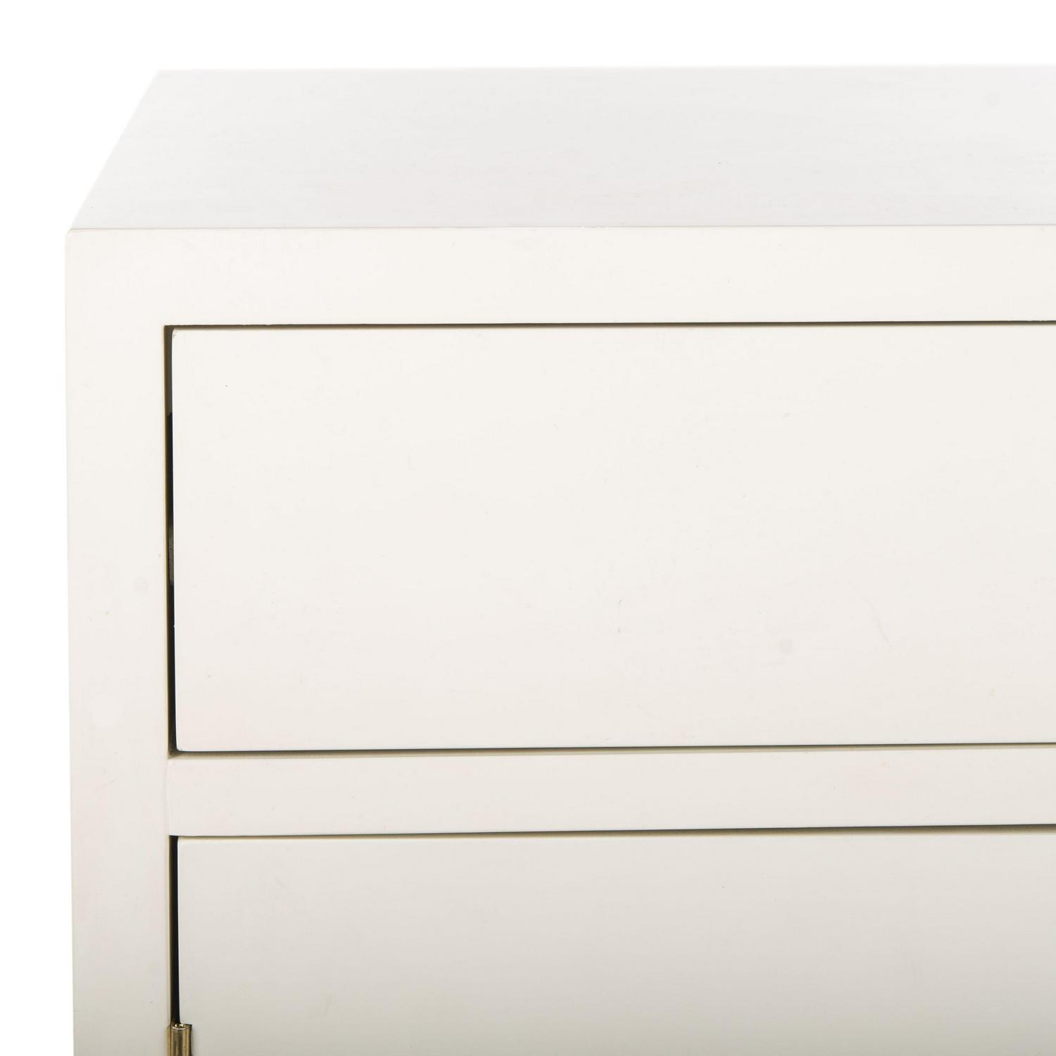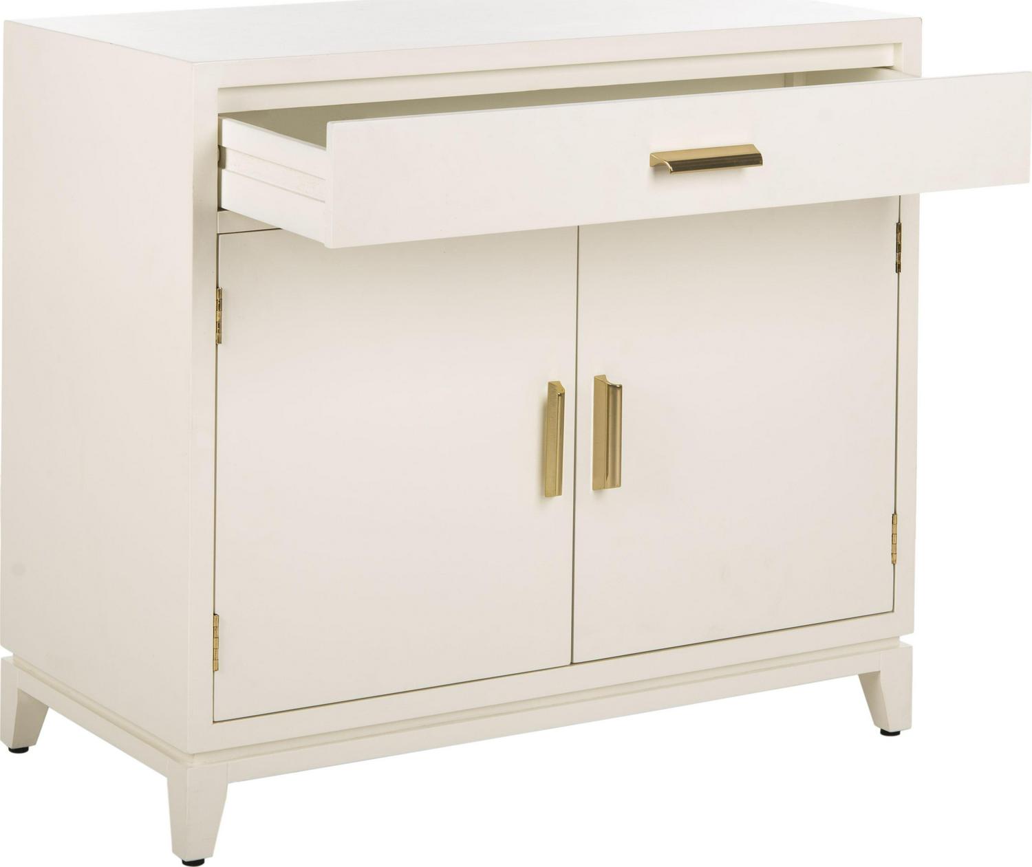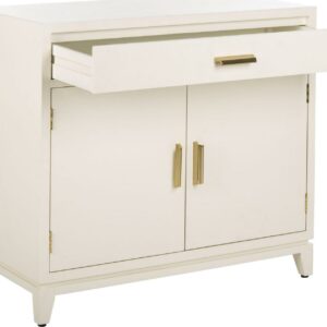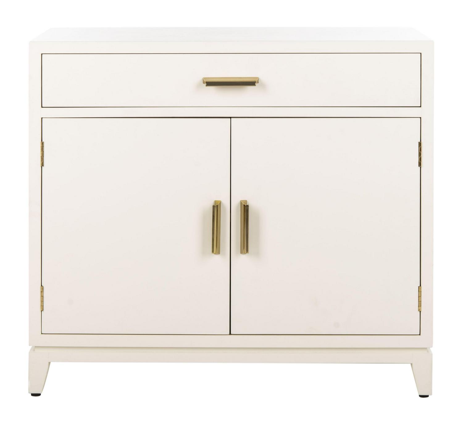 SAFAVIEH Nigel 2-Door 1-Drawer Chest White / Brass Designed for maximum versatility, this 2 door chest is ideal for living room storage or perfect as a nightstand in the bedroom. Its neutral white and brass finishes blend beautifully with any d cor. Designers love how it hides clutter and unsightly accessories.