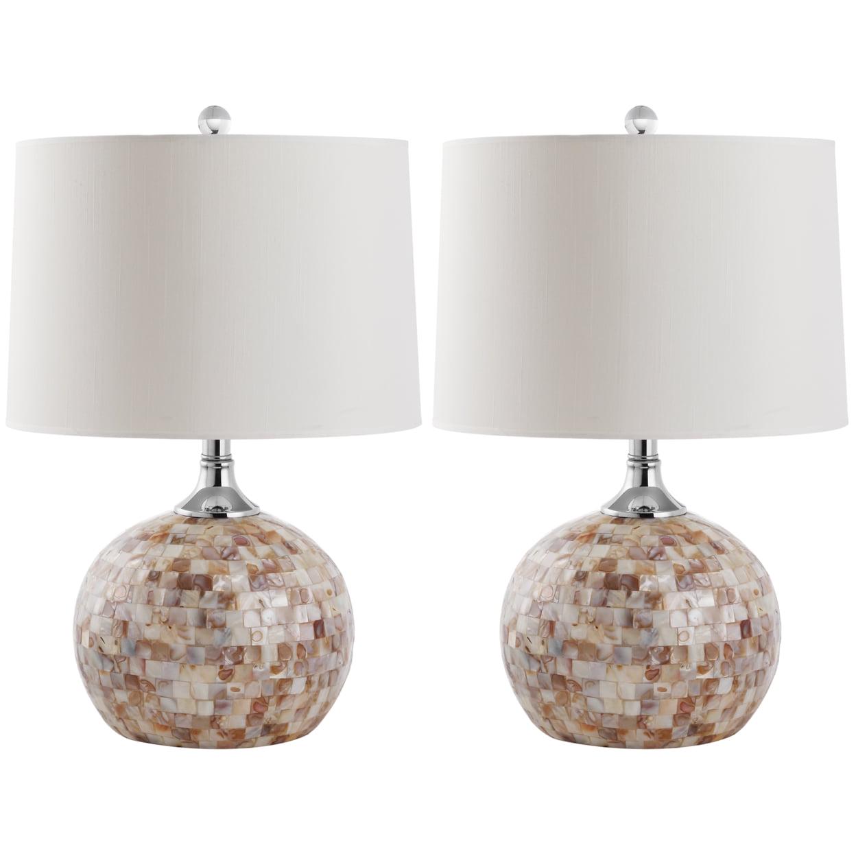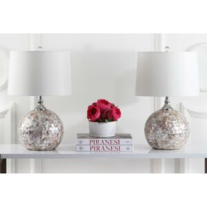 SAFAVIEH Nikki 22 in. 2-Lt. Chrome Shell Table Lamp with White Polyester Shade, Set of 2