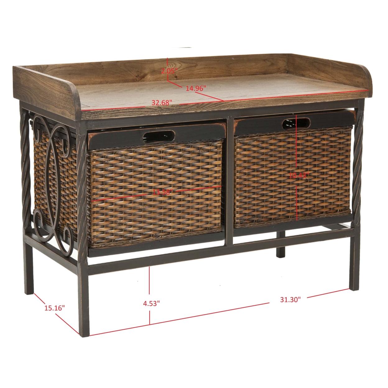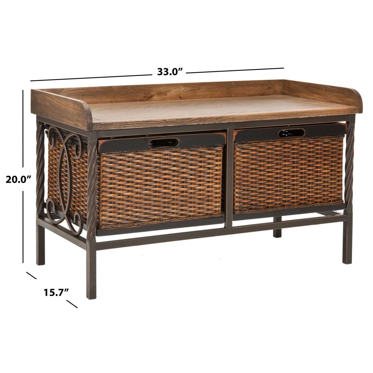 SAFAVIEH Noah 2-Drawer Wooden Storage Bench Pewter / Oak The Noah Storage Bench is a welcome addition to any entry hall, mud room, or family room. Noah’s oak finished seat is perfect for removing rain boots or shoes after a long day, and two wicker style baskets tucked in an intricately detailed antique pewter frame offer discrete yet stylish storage.