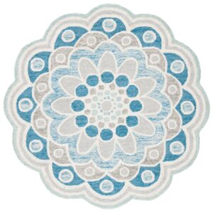 SAFAVIEH Novelty NOV101A Handmade Grey / Blue Rug The Novelty Collection displays creatively styled area rugs with eye-catching motifs, bold colors and a thick wool pile. These craft-art inspired floor coverings come wide range of sizes and designs that are ideally suited as kitchen rugs and decorative accents for the den, the hallway or children s playrooms. Novelty rugs are hand tufted using pure soft wool with a cotton backing for a cushioned feel underfoot. Rug has an approximate thickness of 0.5 inches.