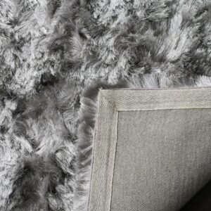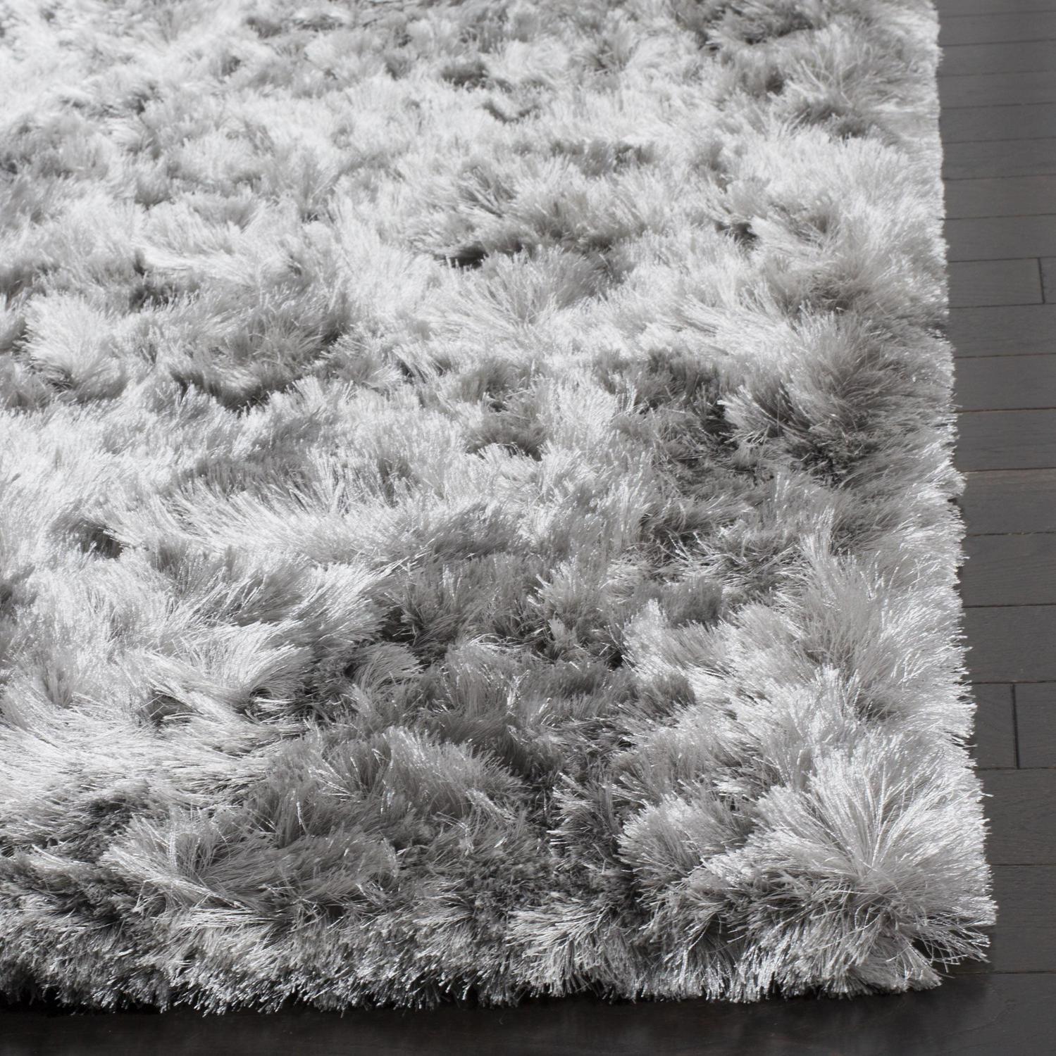 SAFAVIEH Ocean Trellis Solid Plush Polyester Shag Area Rug, Silver, 3′ x 5′
