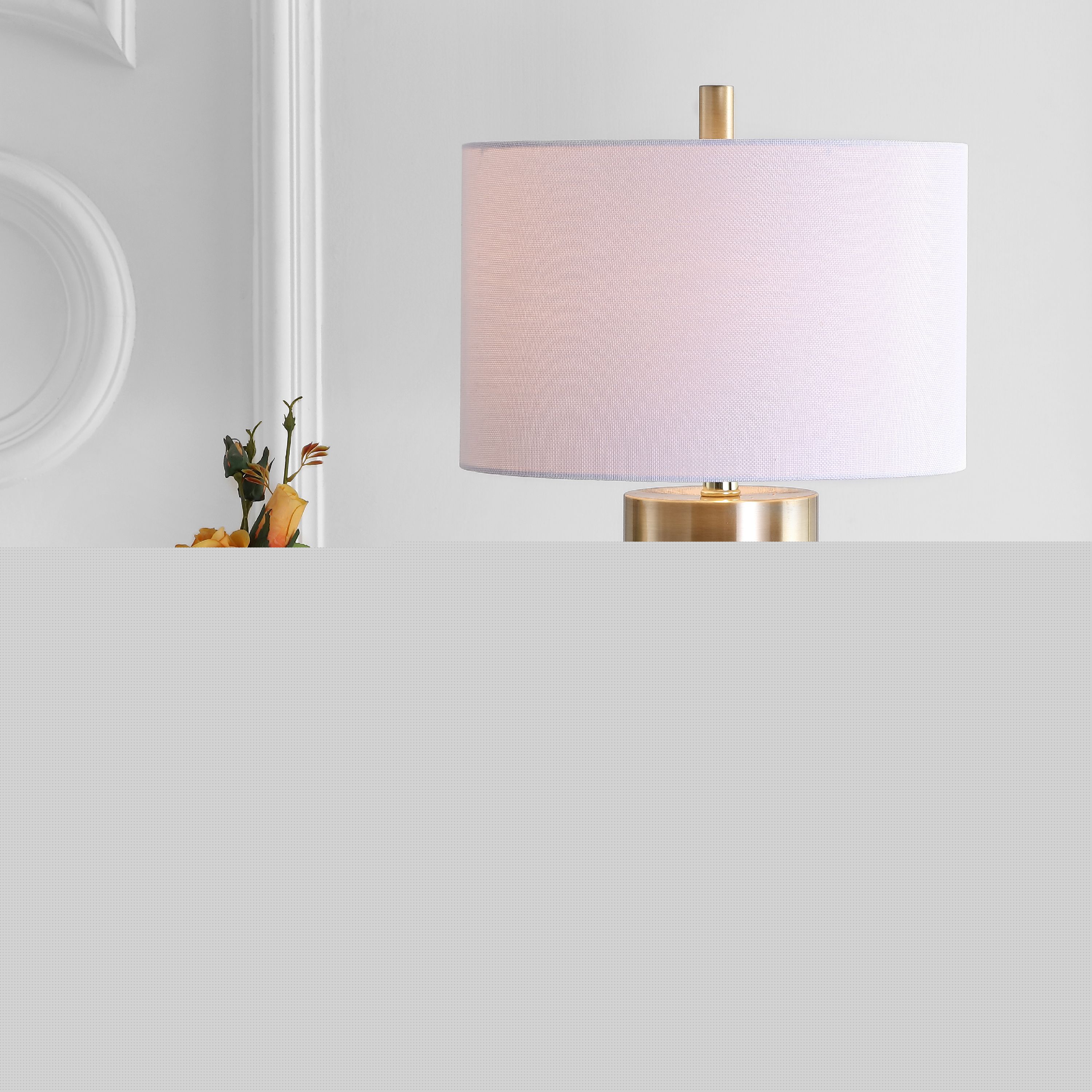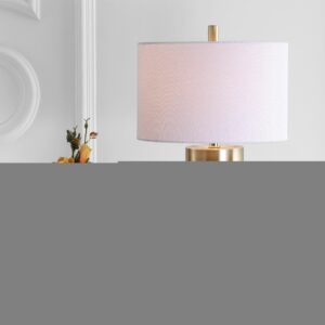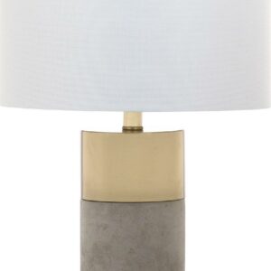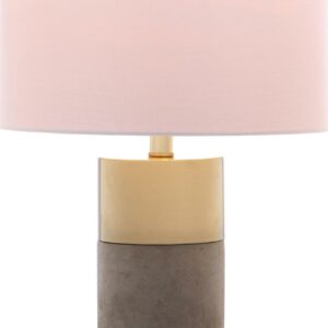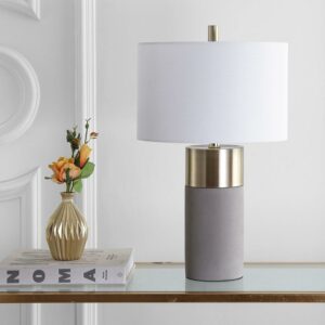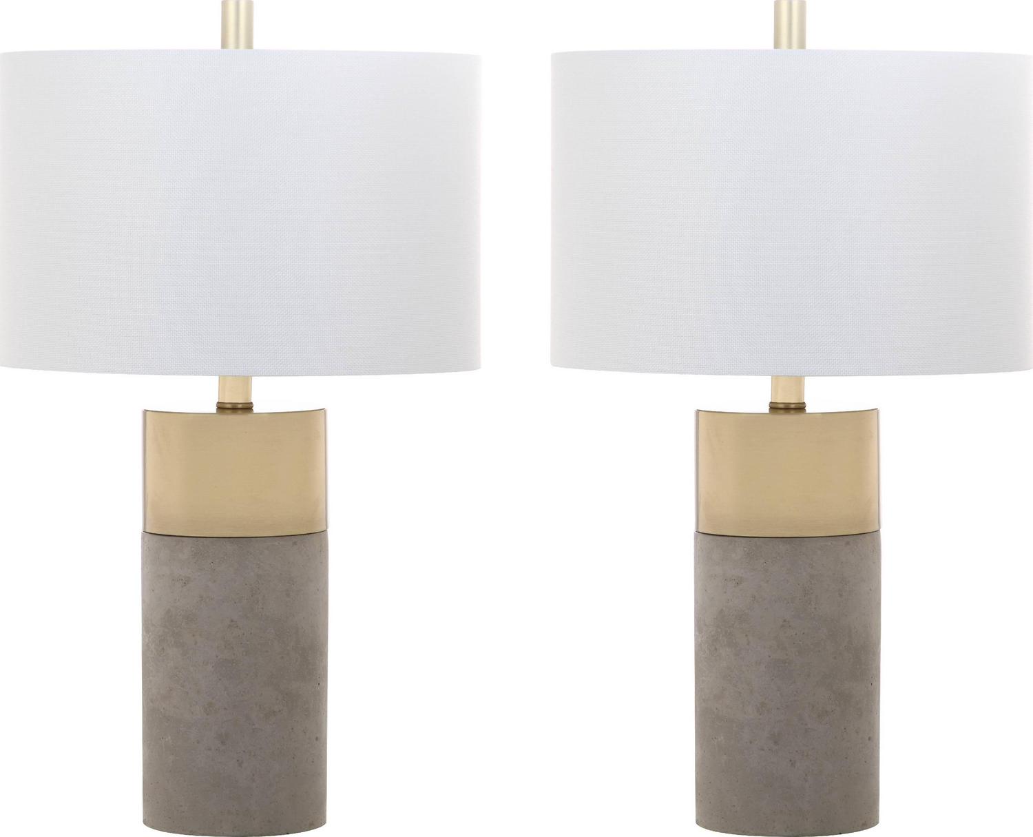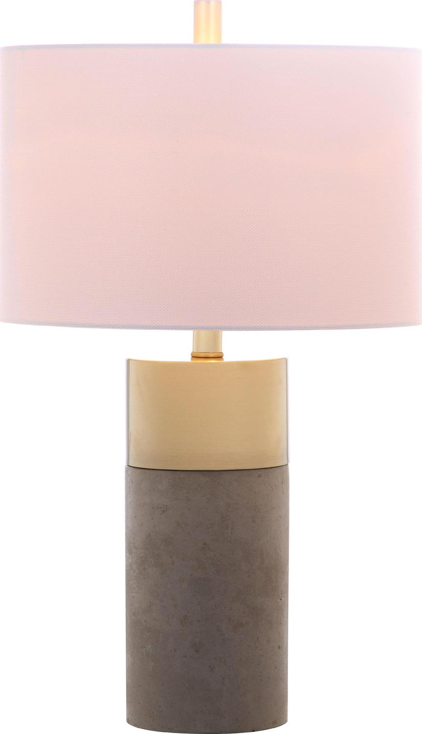 Inspired by the texture and form of modern sculpture, this contemporary table lamp lends depth and dimension to any living room. Its smooth grey cylindrical body features luxurious gold detail. Designers love the clean lines of its complimentary shade.- Contemporary design adds a chic look to your home