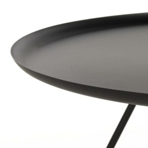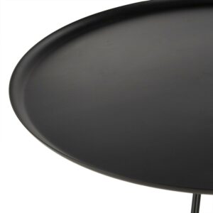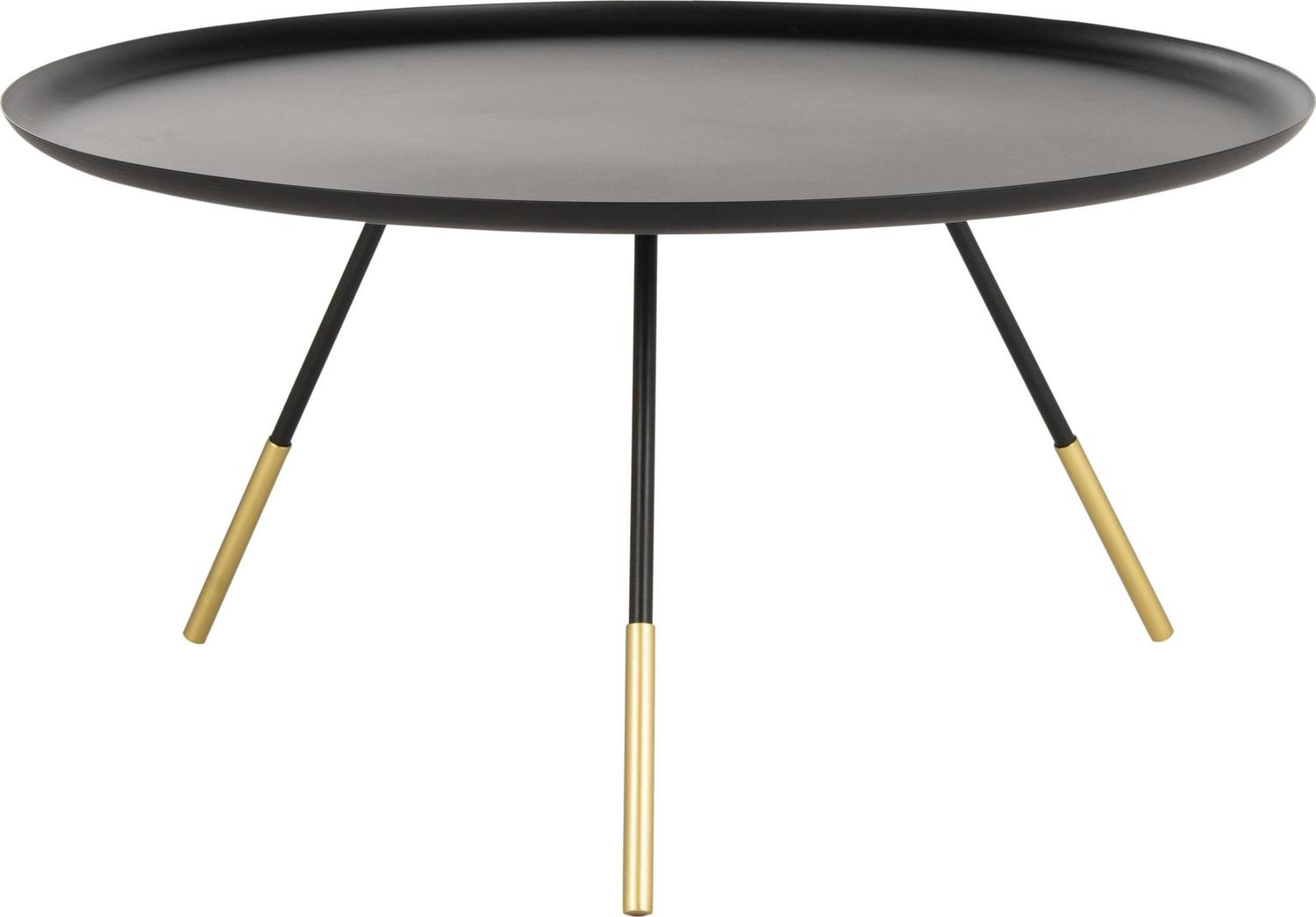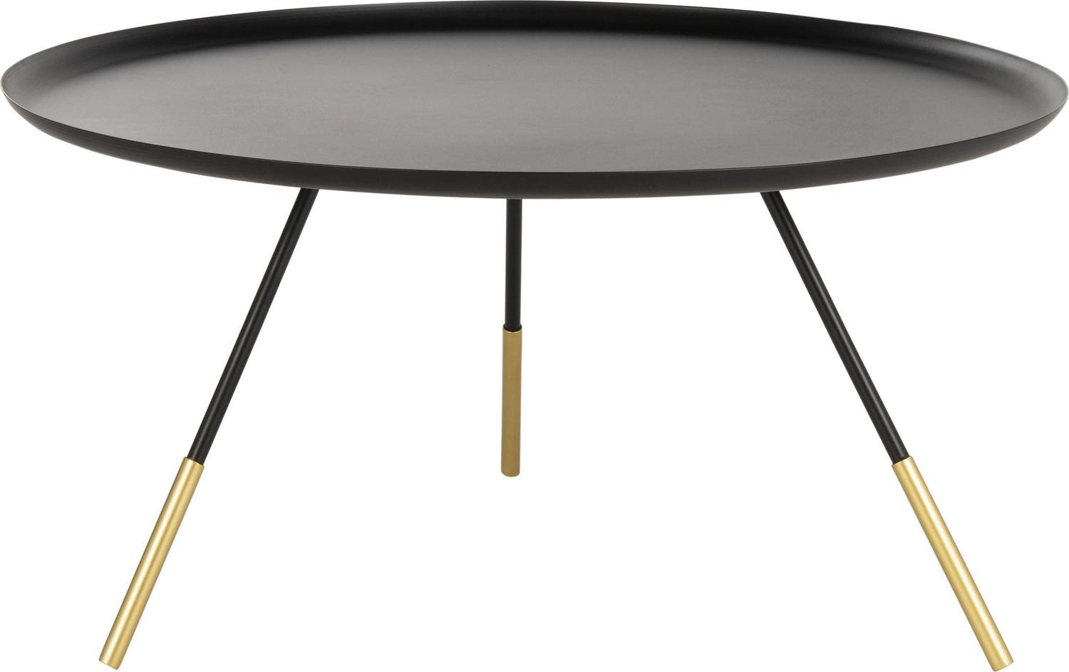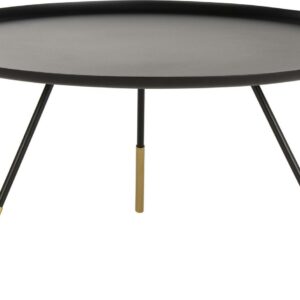Ideal for daily gatherings, this contemporary coffee table blends form and function. Finished in a versatile black hue, its large circular tray-style top is perfect for drinks and snacks. Chic metal gold cap legs add a touch of luxury.
