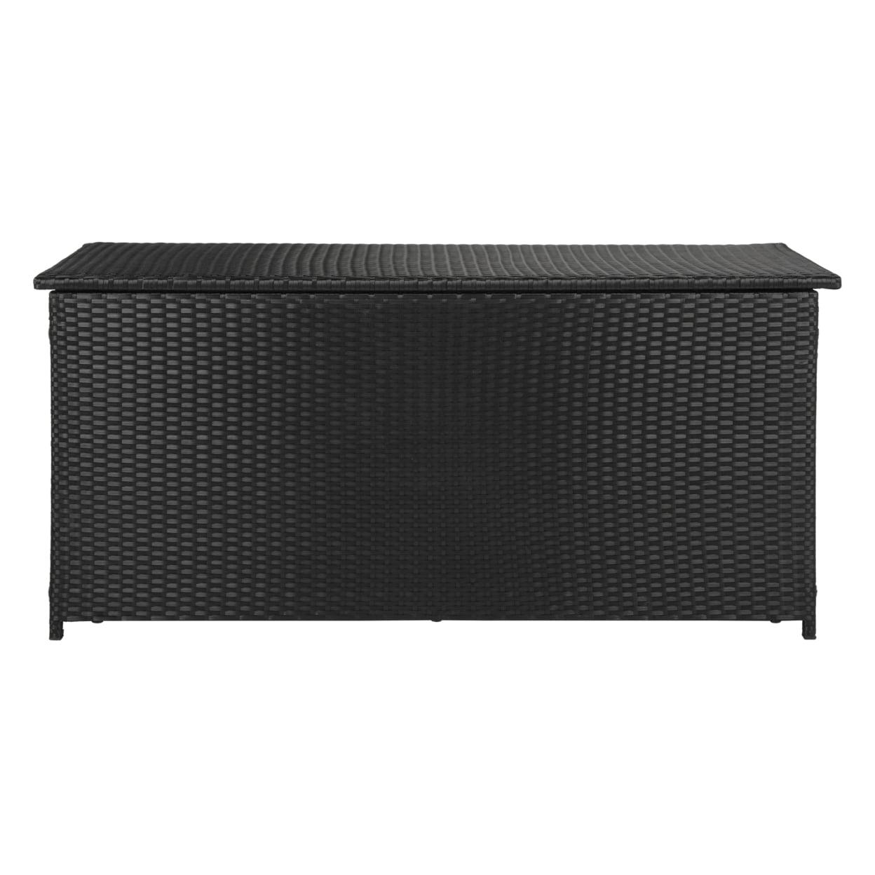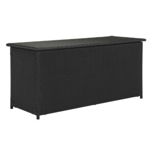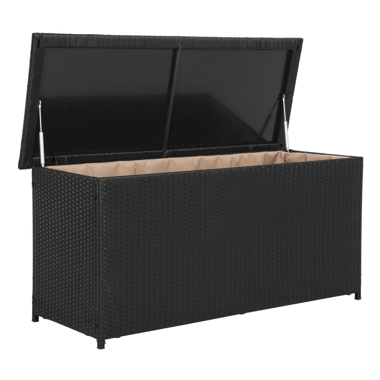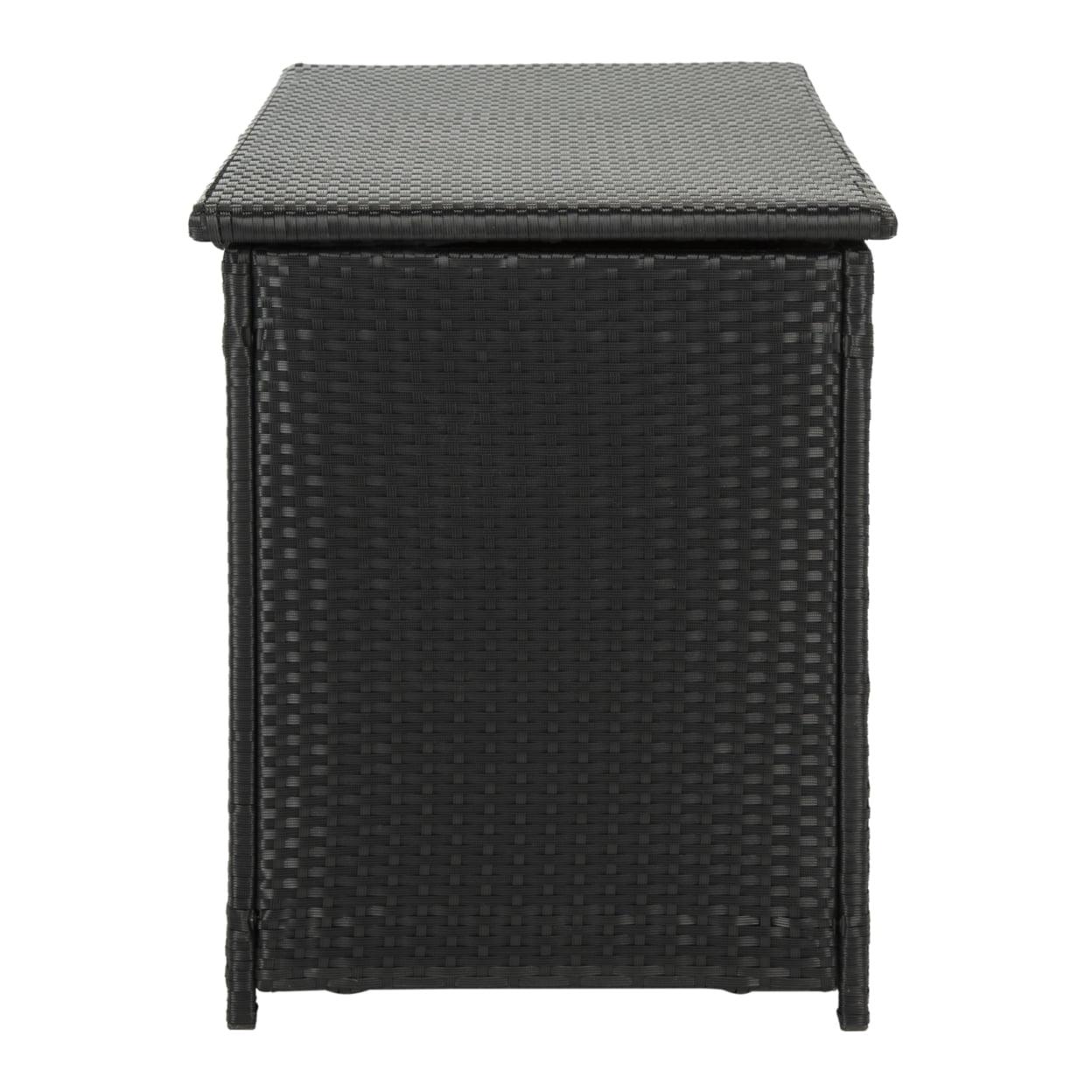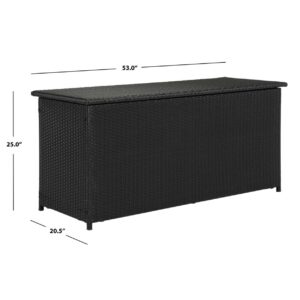SAFAVIEH Outdoor Collection Cosima 53-inch Wide 13 Gallon Storage Box Black Designed with style and substance, this contemporary black cushion box is the key to outdoor living with ease. Inspired by storage used at top resorts, its rugged rattan construction makes it an ideal place for storing cushions, blankets and towels.