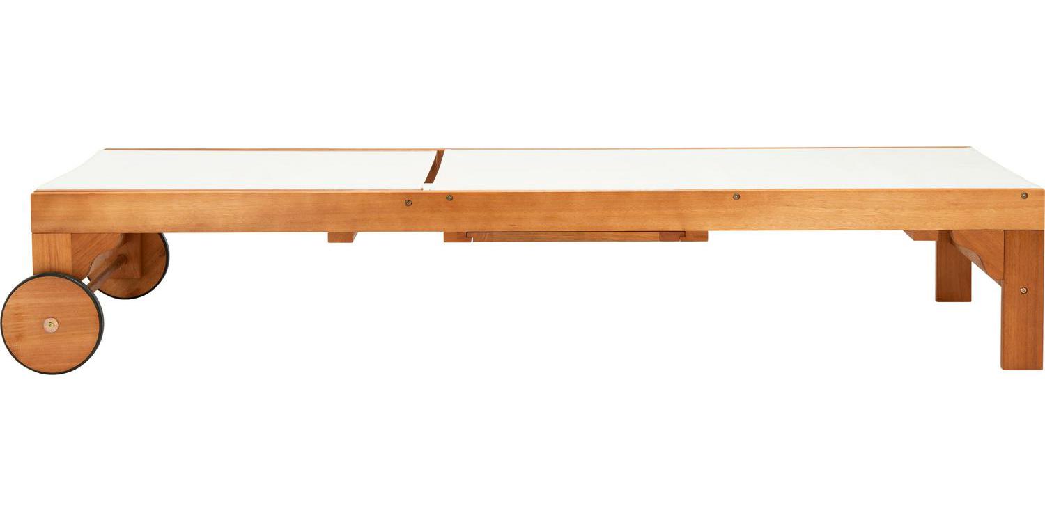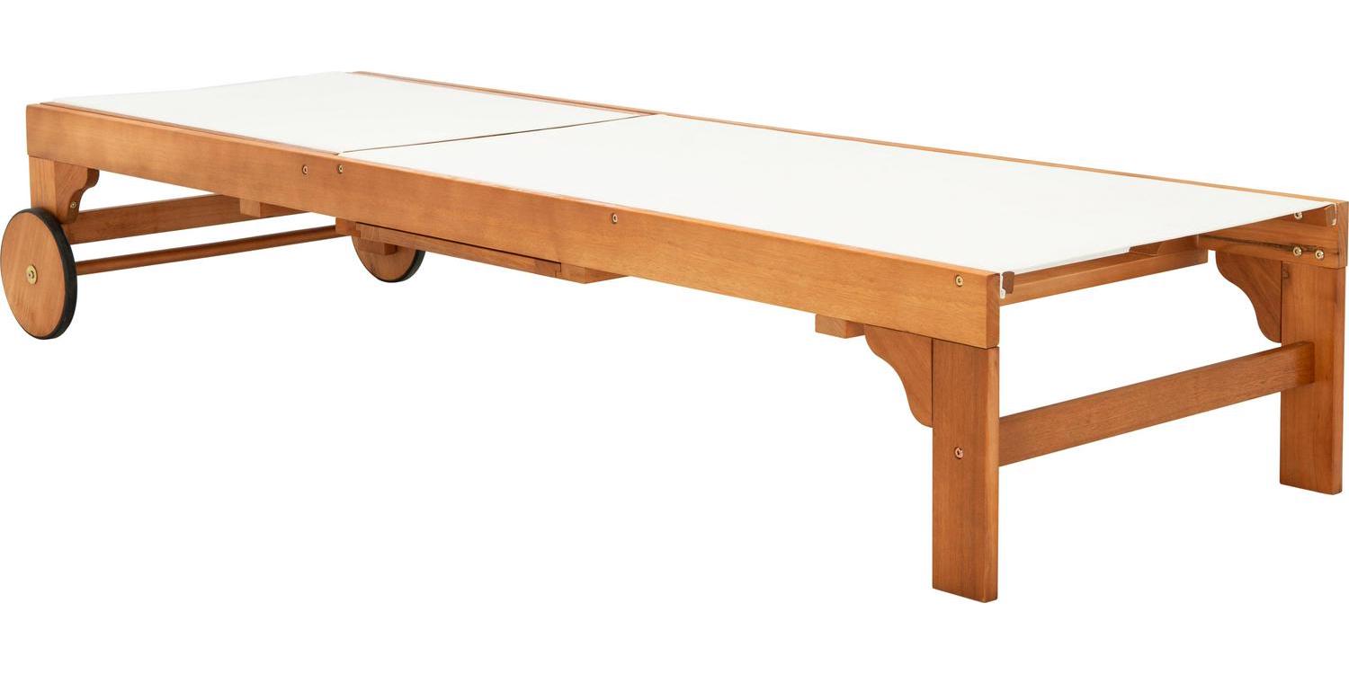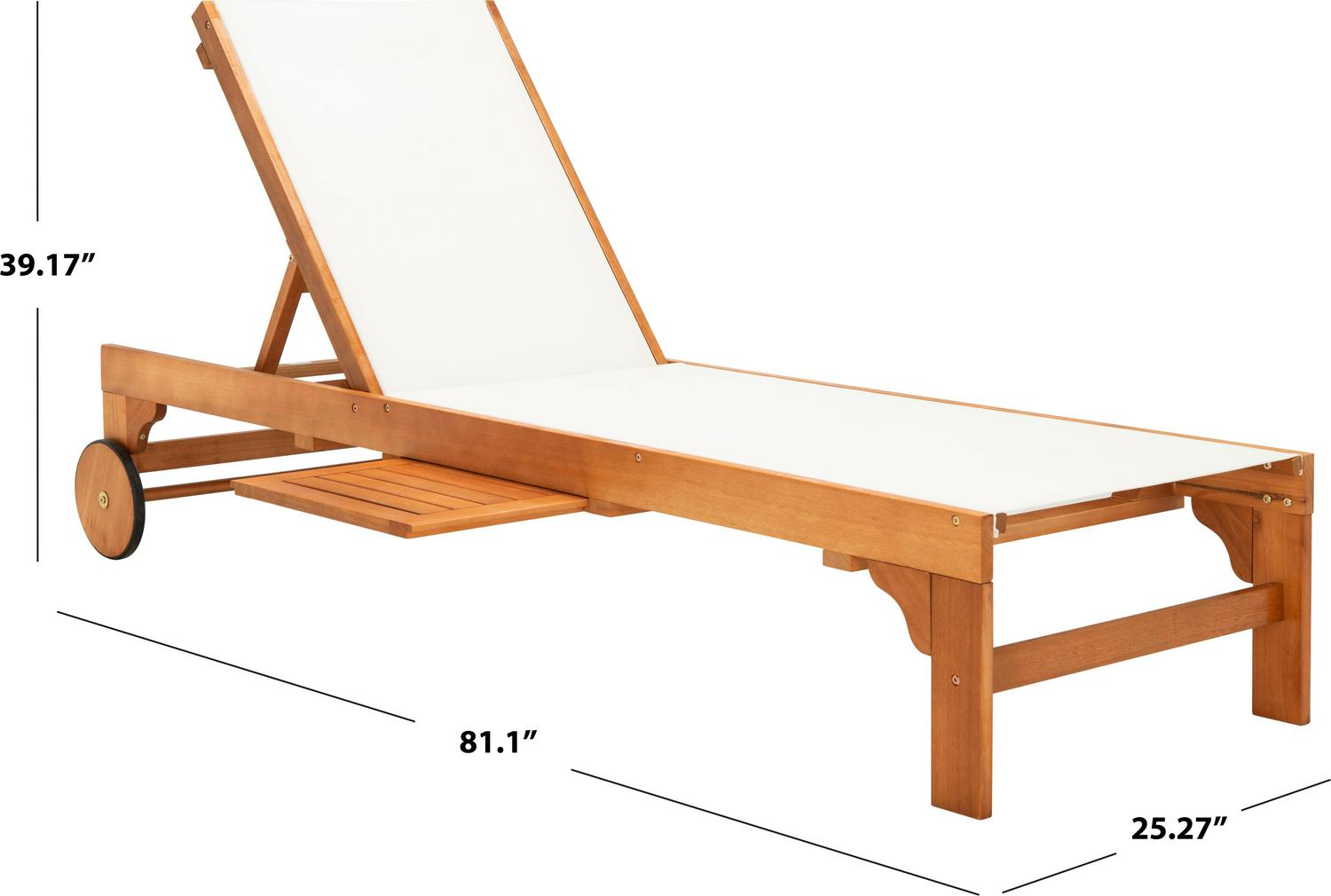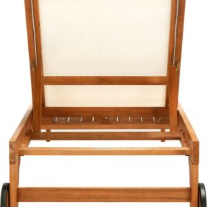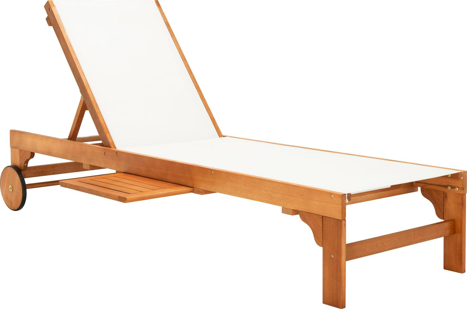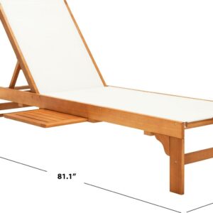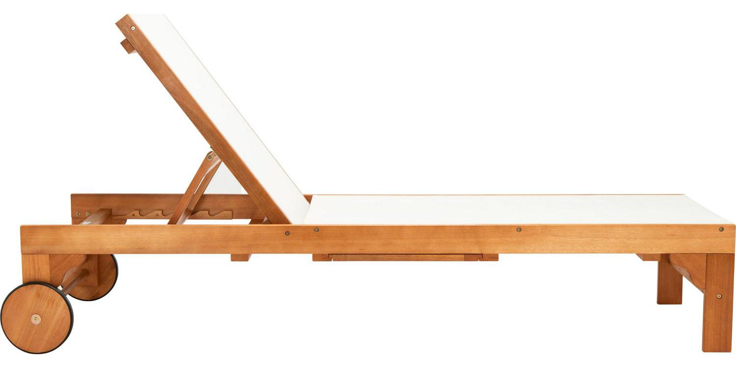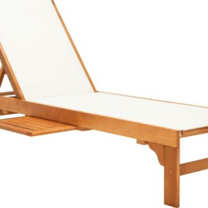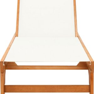 SAFAVIEH Outdoor Collection Ralden Chaise Sunlounger Natural/Beige Sip cocktails and daydream all day in this chic outdoor sun lounger. Designed with a warm, neutral beige fabric and gorgeous natural eucalyptus wood, it easily blends into any d cor. Often purchased in pairs, use it alongside the pool or any sunny spot.