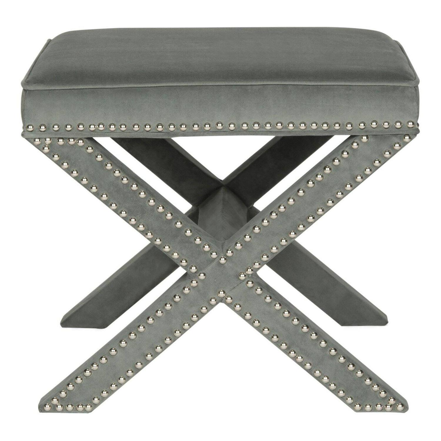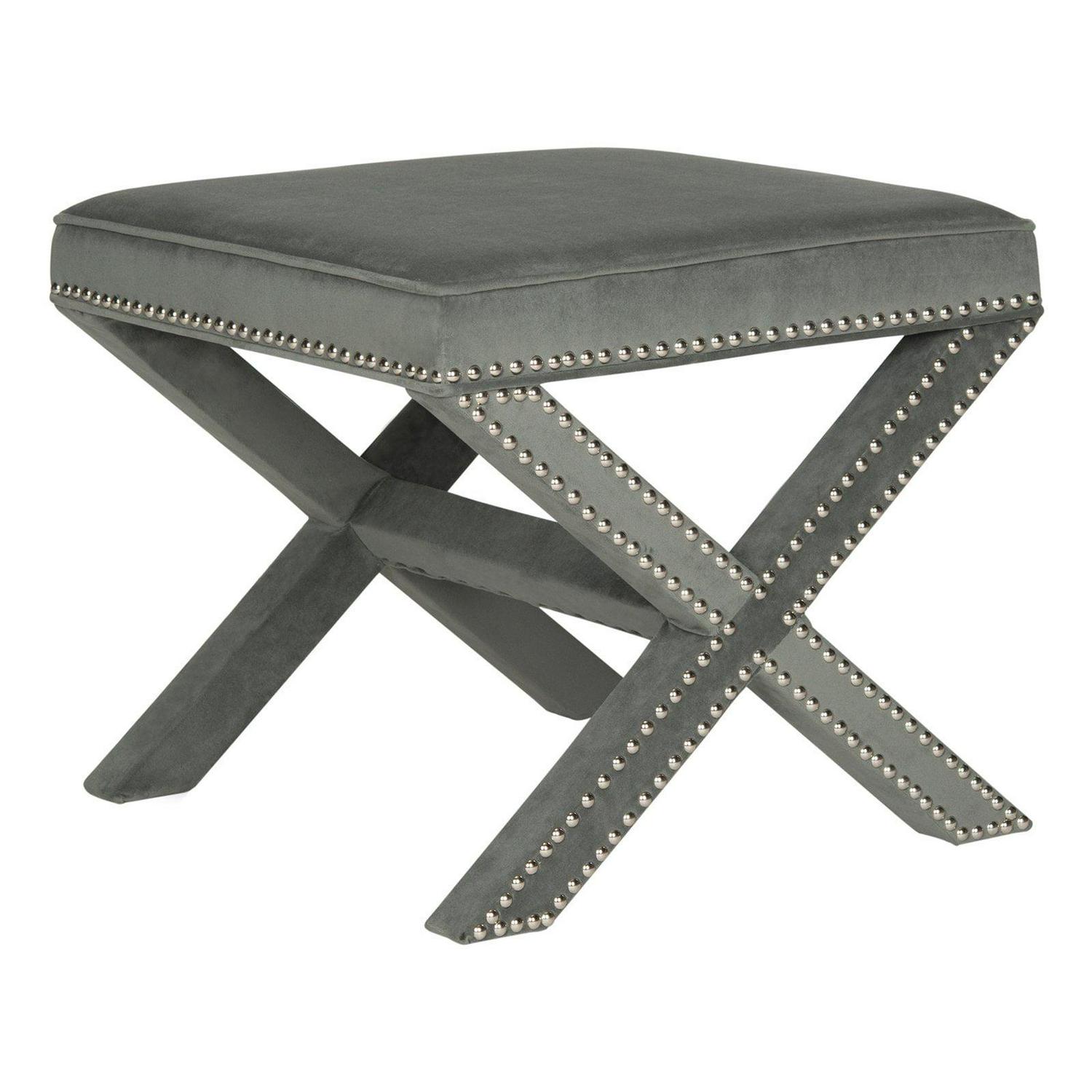 The decidedly dapper Safavieh Palmer Ottoman is also ultra versatile. You’ll use this smart ottoman as a cocktail table, footrest, or even an extra seat. Its classic design includes a sturdy X frame fully upholstered in fabric in your choice of available colors with nailhead trim.