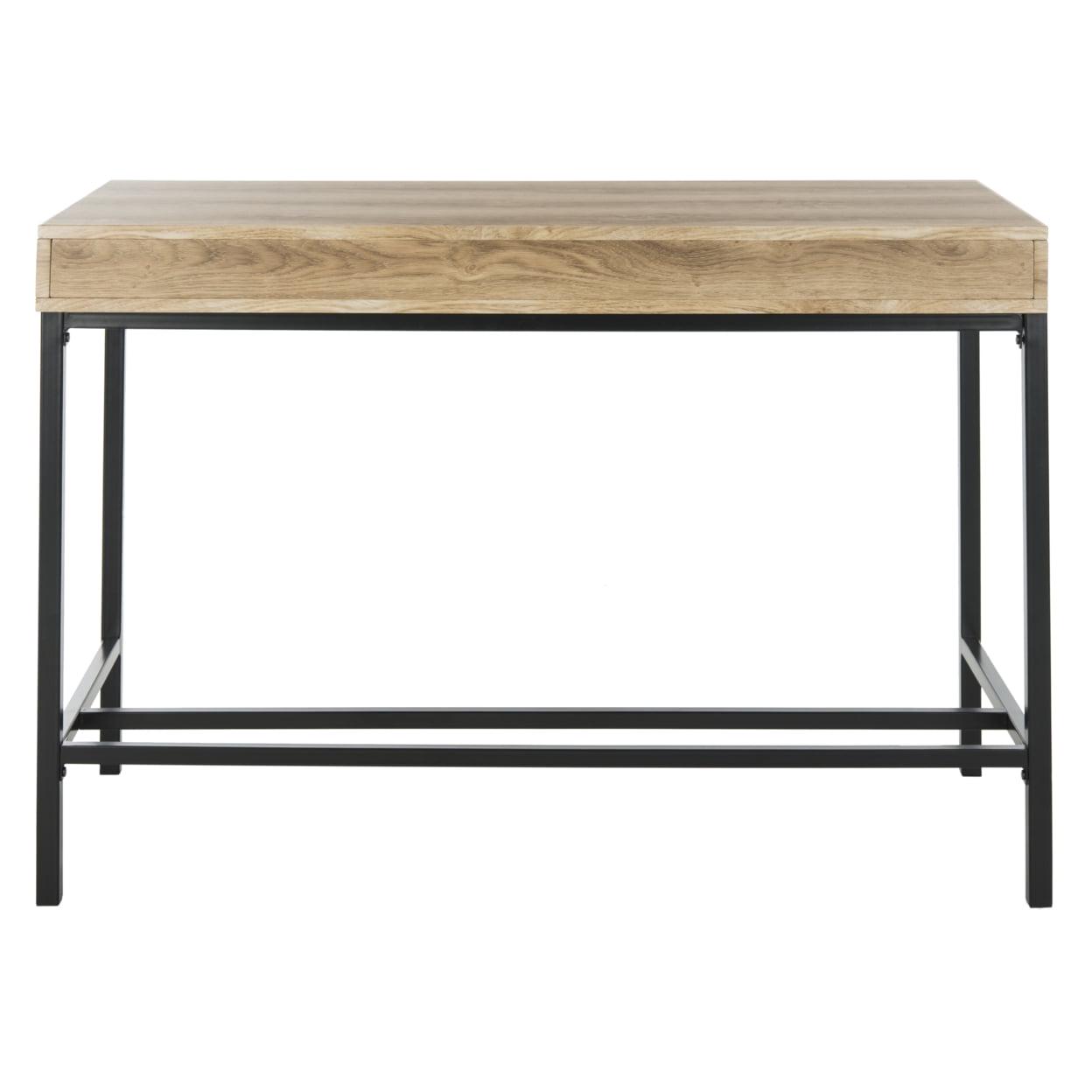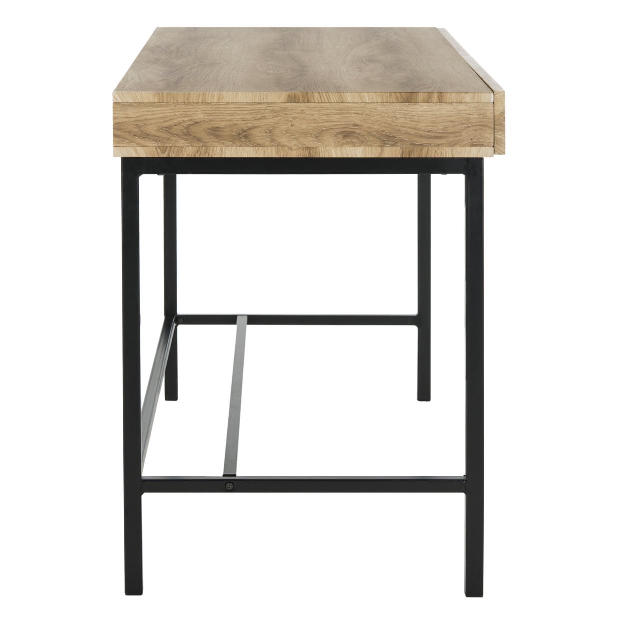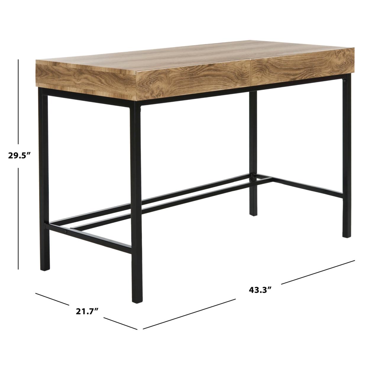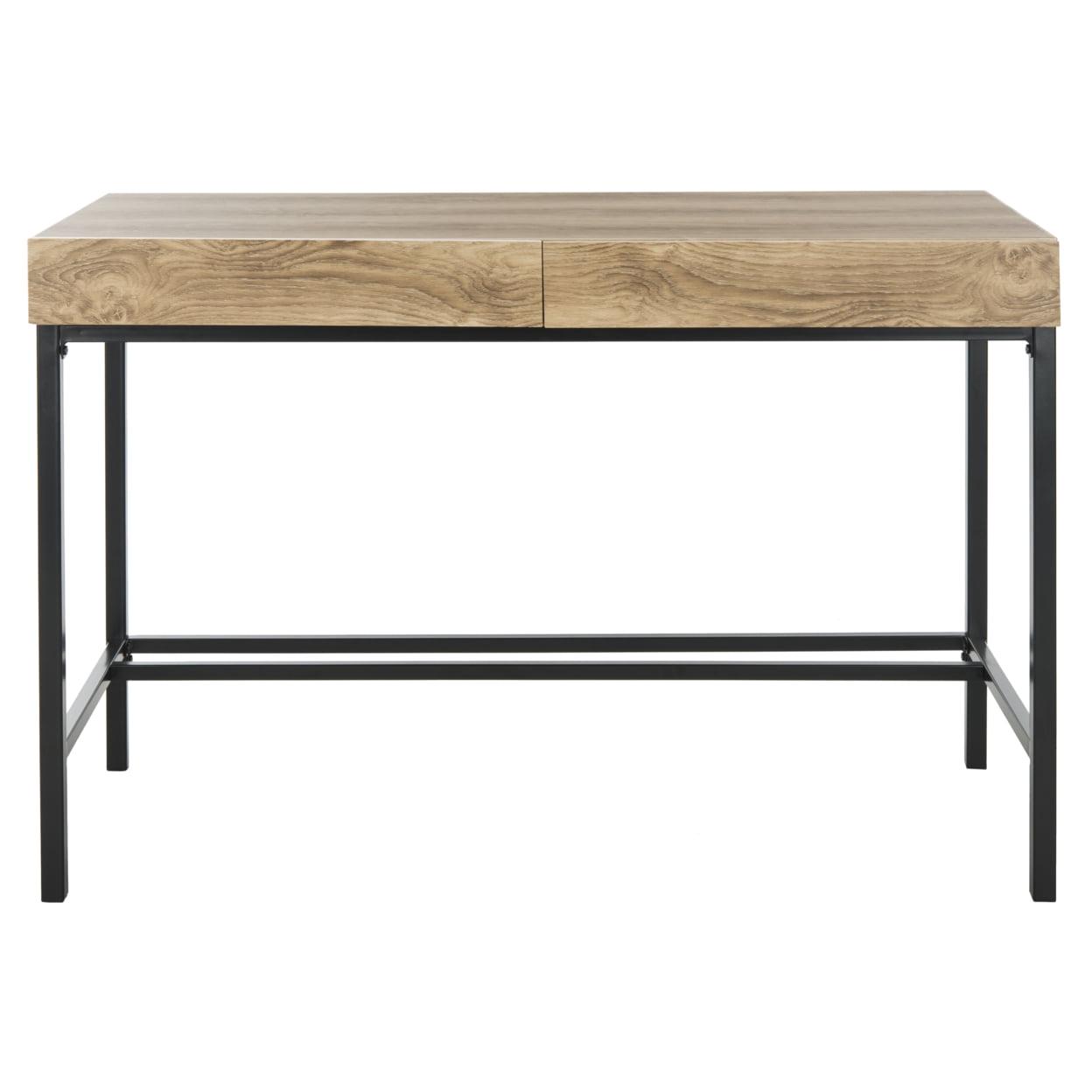 SAFAVIEH Patrick 2-Drawer Desk Brown / Black Inspired by the minimalist headquarters of an iconic Berlin designer, this 2 drawer desk is the foundation for a contemporary office. A natural oak finish envelopes the clean lines of its black metal frame. Two ample drawers keep clutter to a minimum.