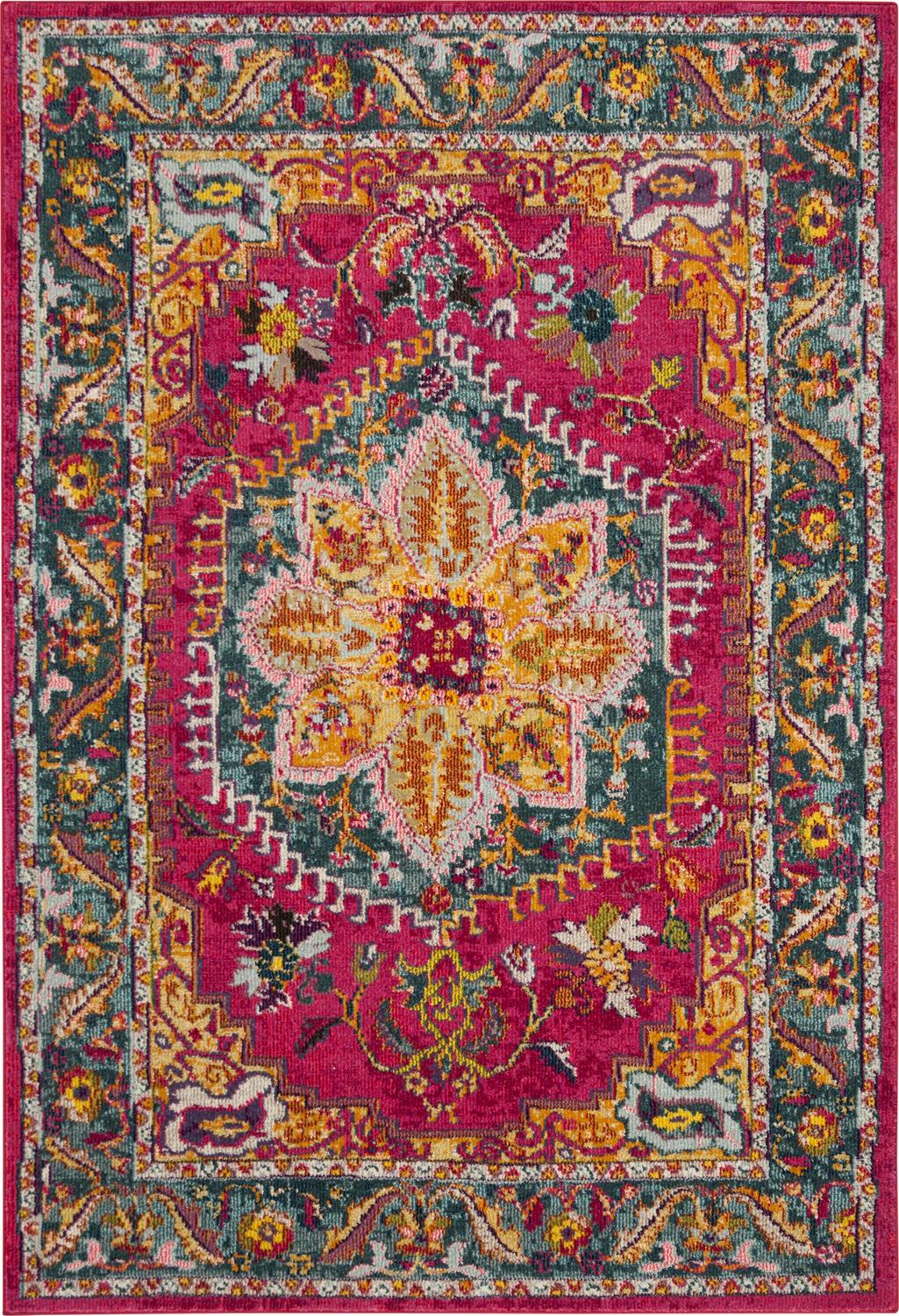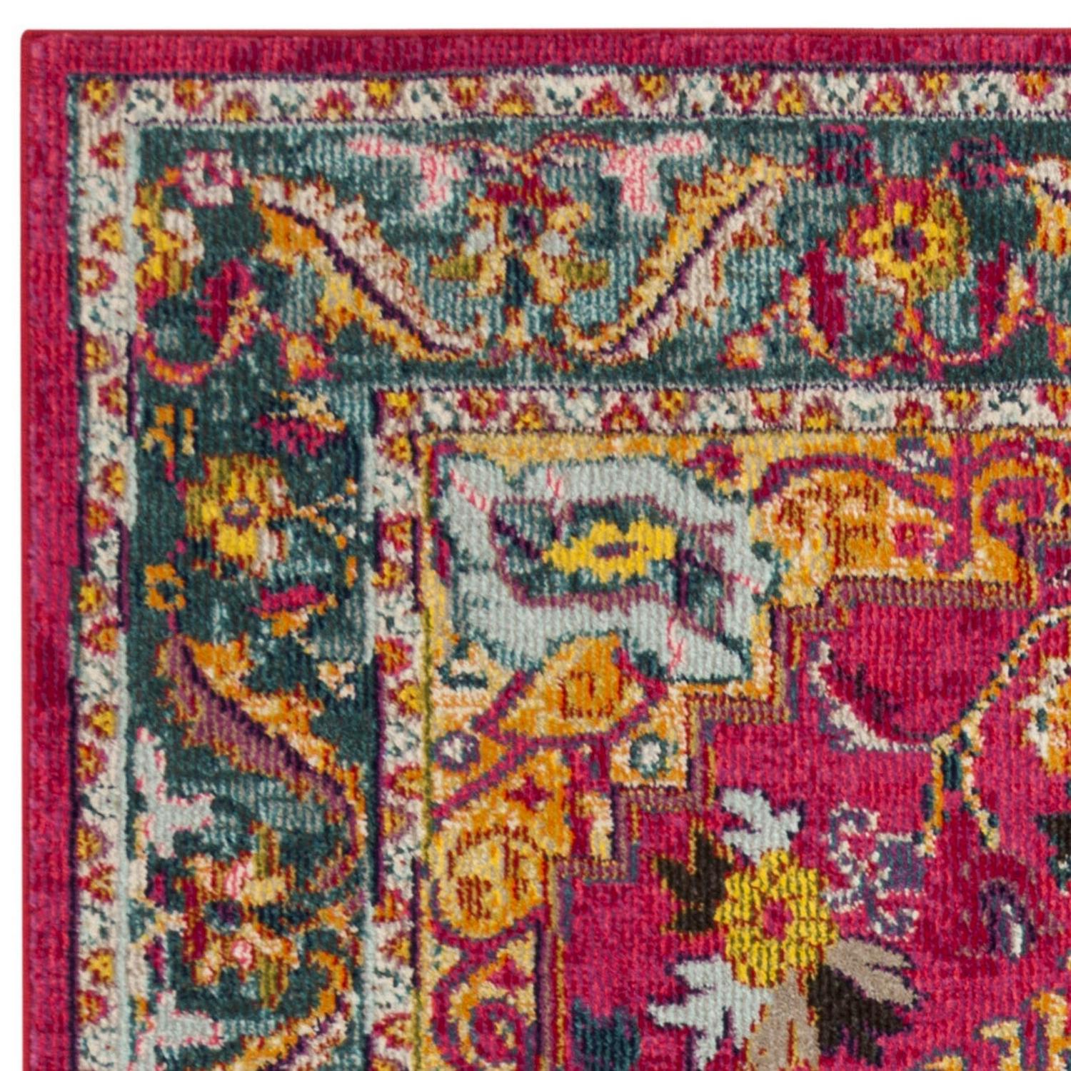 SAFAVIEH Phoenix Brooklyn Border Area Rug, Fuchsia/Blue, 5’1 x 7’6