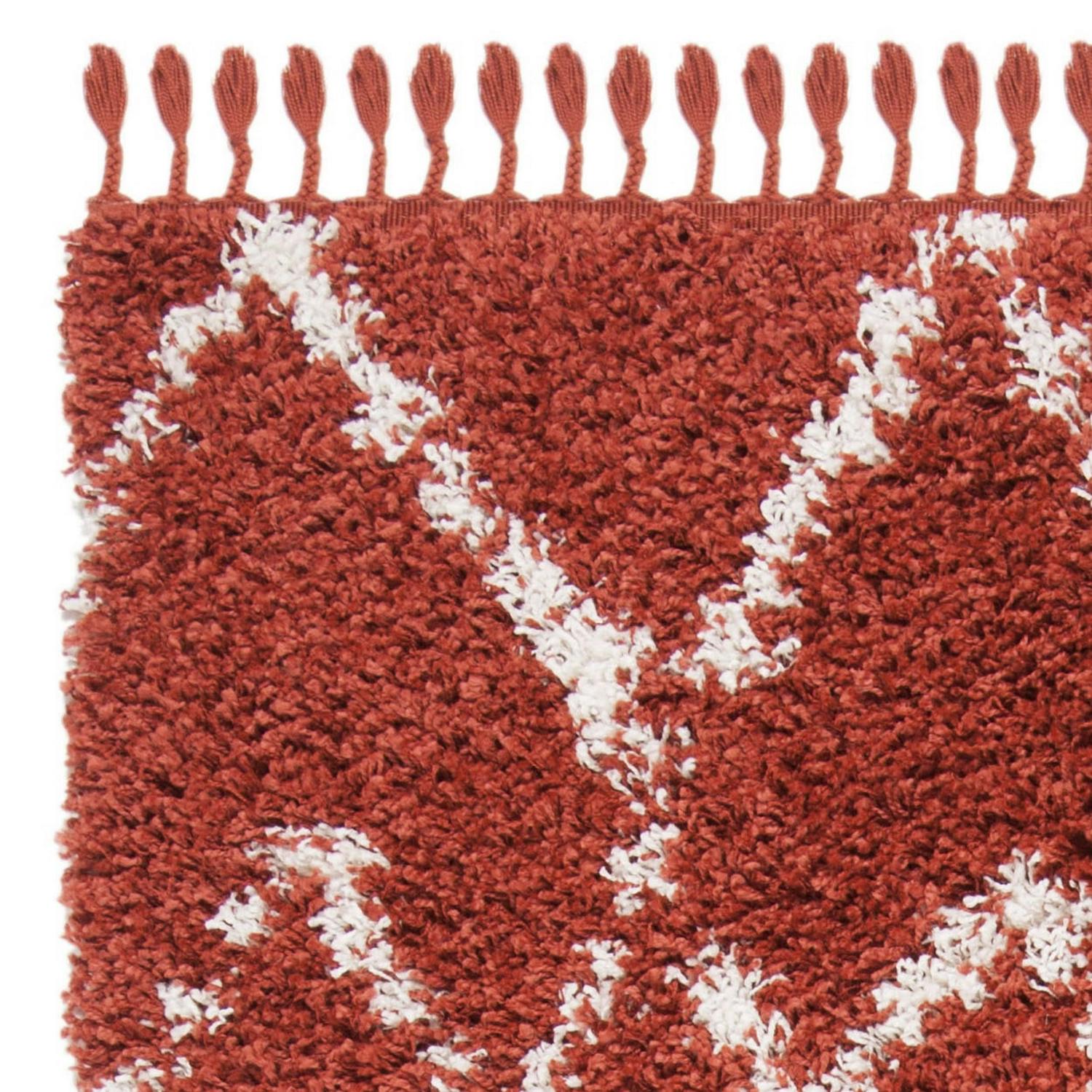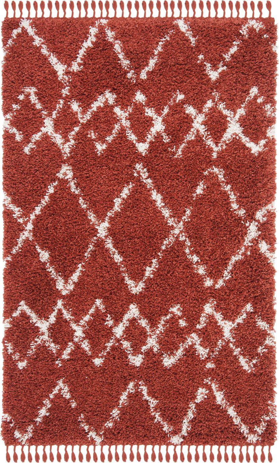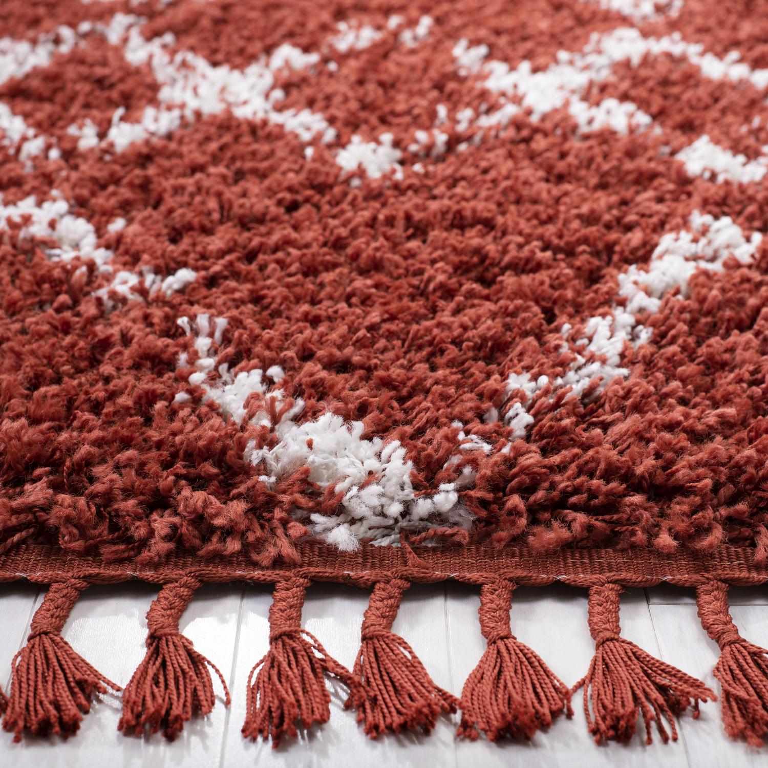 SAFAVIEH Pro Lux Shag Collection PLX434P Rust / Creme Rug SAFAVIEH s Pro Luxe shag rug provides luxurious textured comfort underfoot and a stylish contemporary appeal. An inviting plush pile height adds softness and warmth to any room, from the living room to the home office. This rug is machine-woven of enhanced synthetic fibers for durability and easy-care. Rug has an approximate thickness of 2 inches.