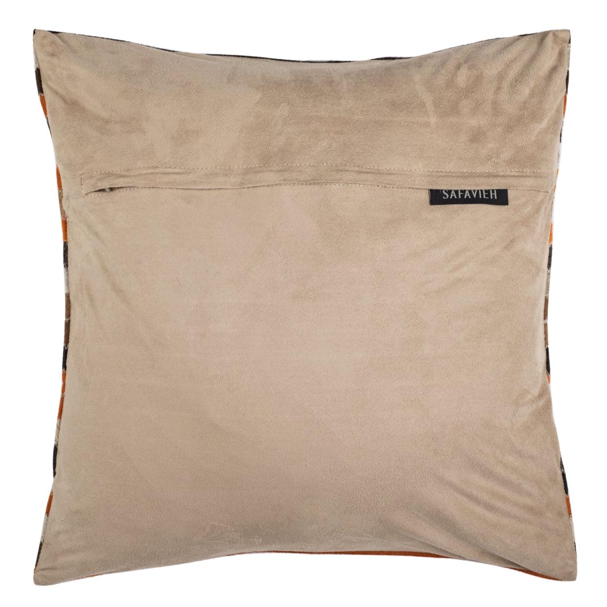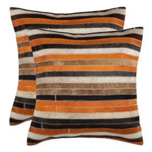 SAFAVIEH Quinn Pillow Set of 2 Orange / Tan Add geometric pizzazz to your sofa or bed with the textural Quinn Pillow (set of two), with horizontal bands of cowhide in rich autumn tones, bringing cozy warmth to any room. This casual but sophisticated striped pillow is backed in solid suede.