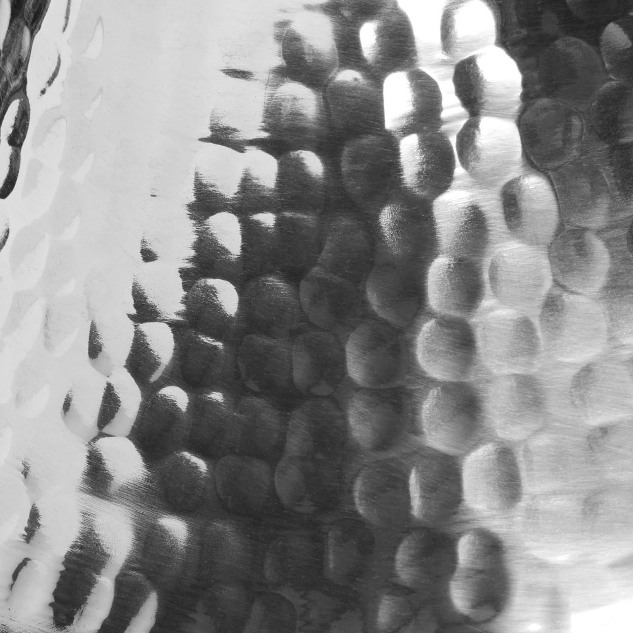 - Polished, hammered silver finish