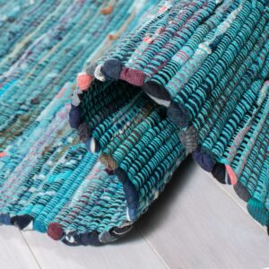 SAFAVIEH Rag Robynne Striped Cotton Area Rug, Blue/Multi, 9′ x 12′