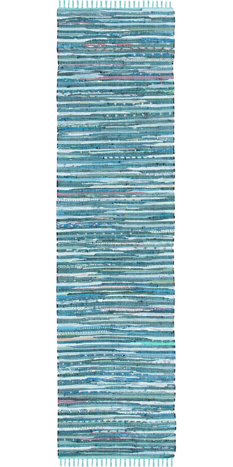 SAFAVIEH Rag Robynne Striped Cotton Runner Rug, Blue/Multi, 2’3 x 14′
