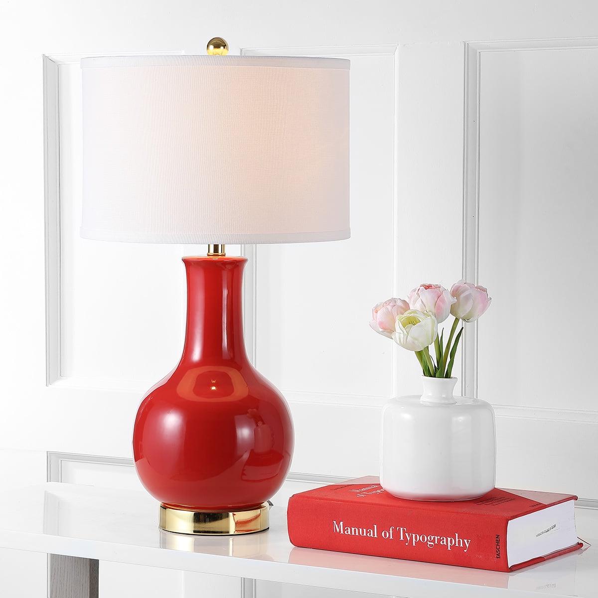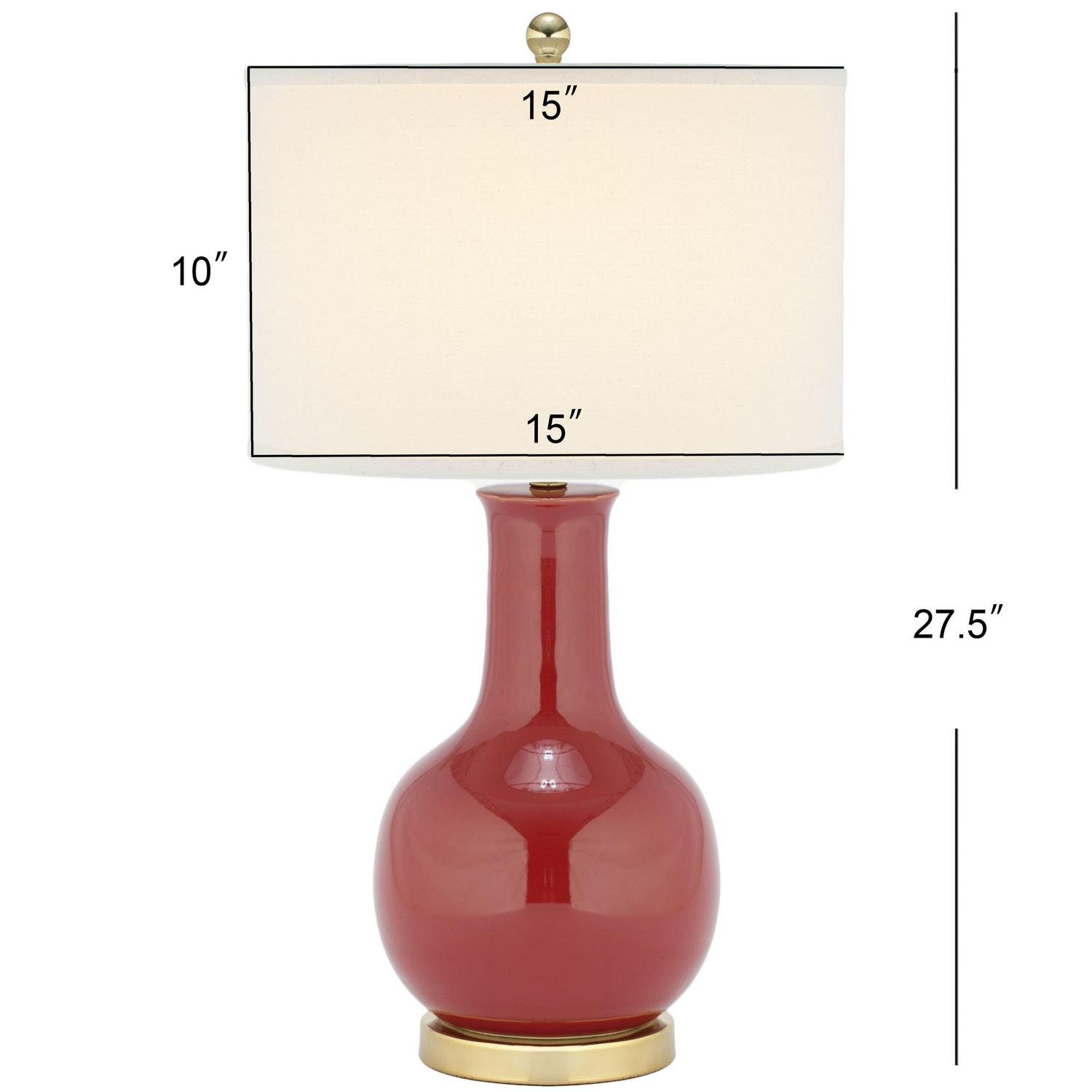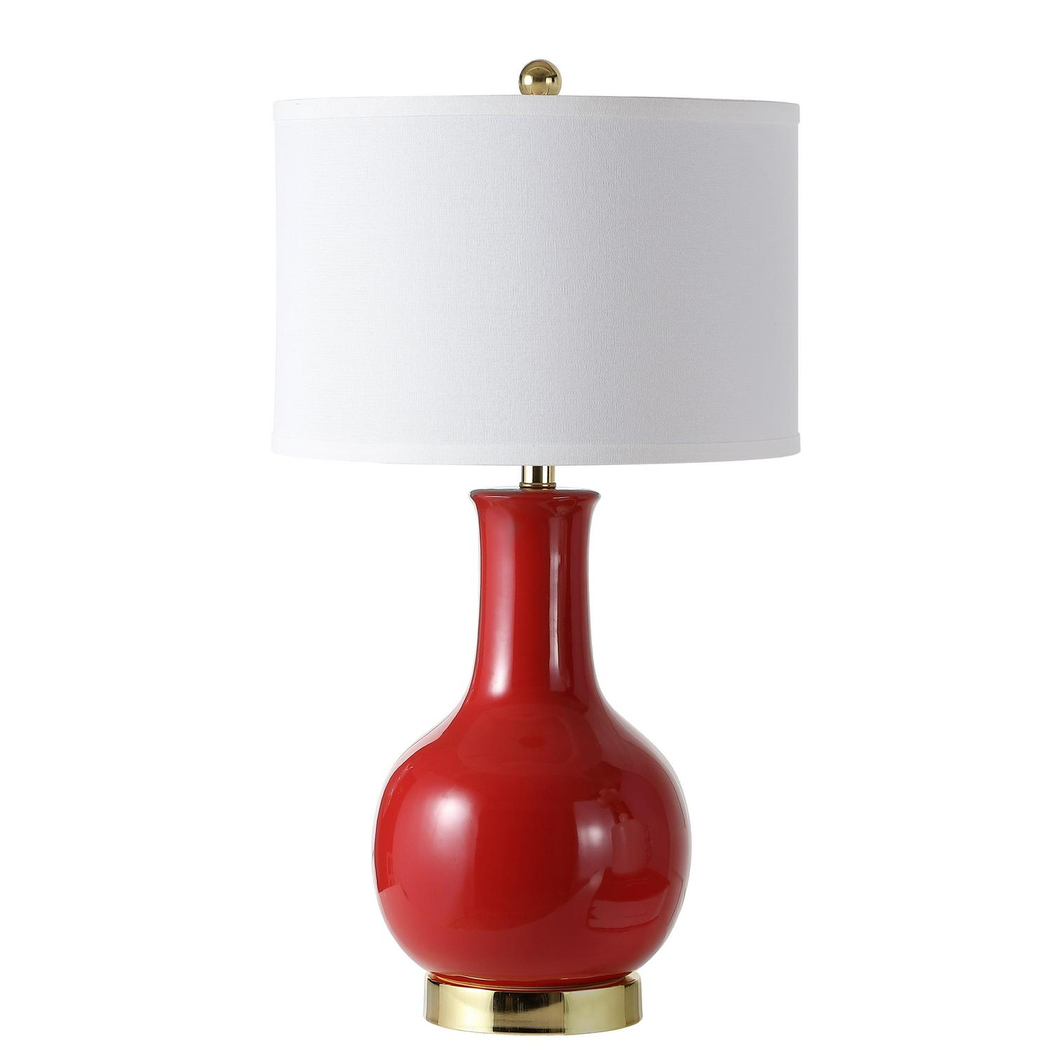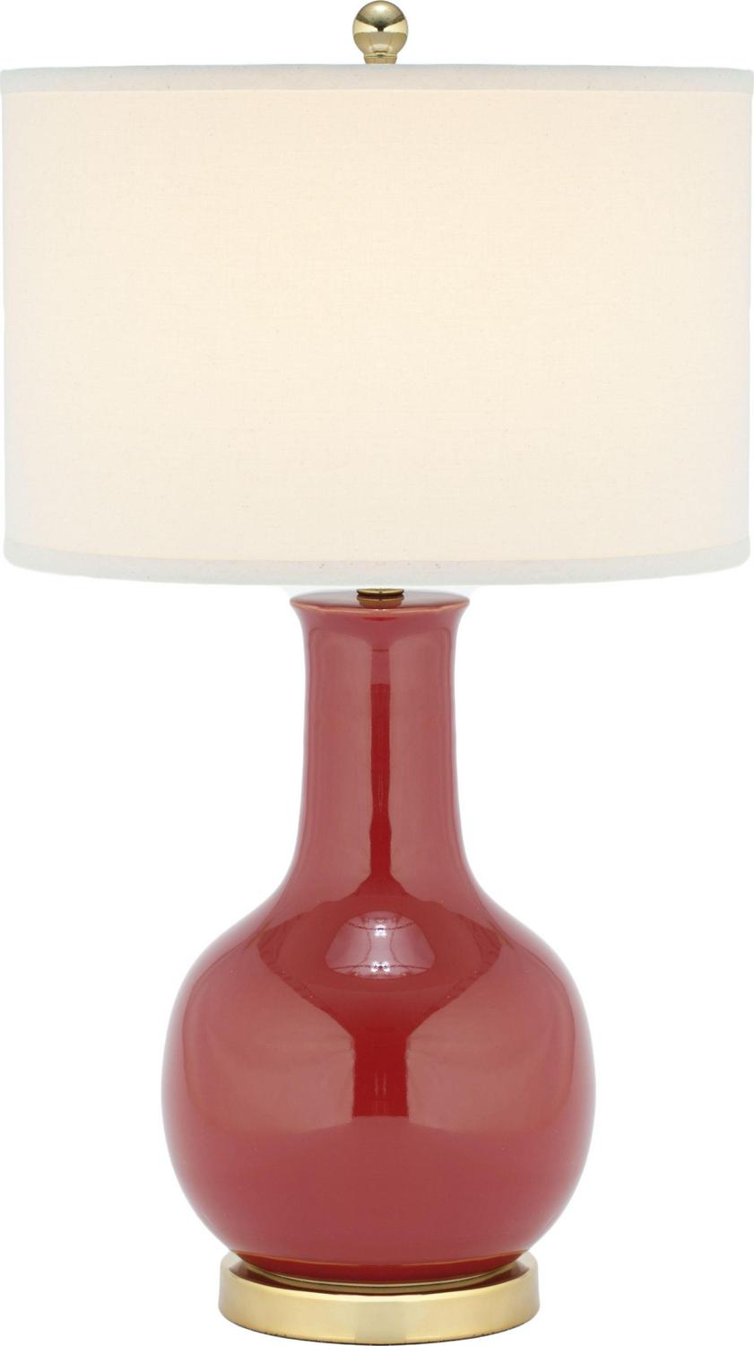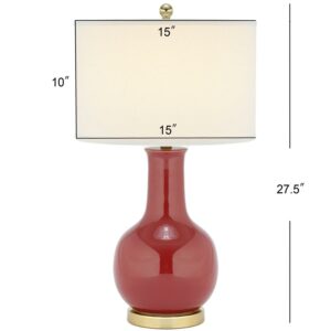 SAFAVIEH Red 28 in. Glam Gold Ceramic Table Lamp with Off-White 100% Cotton Shade