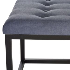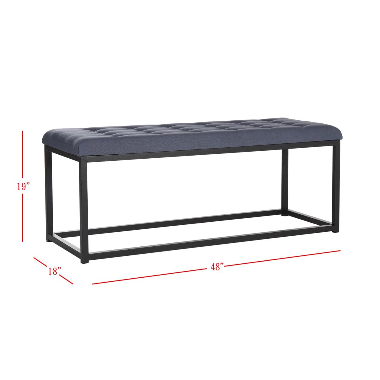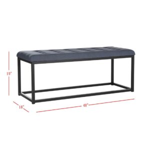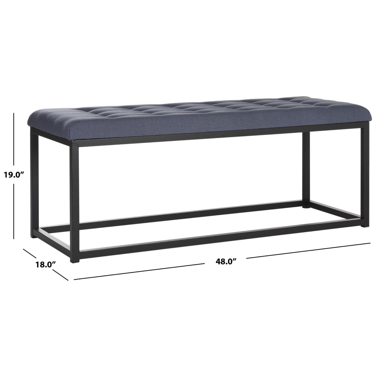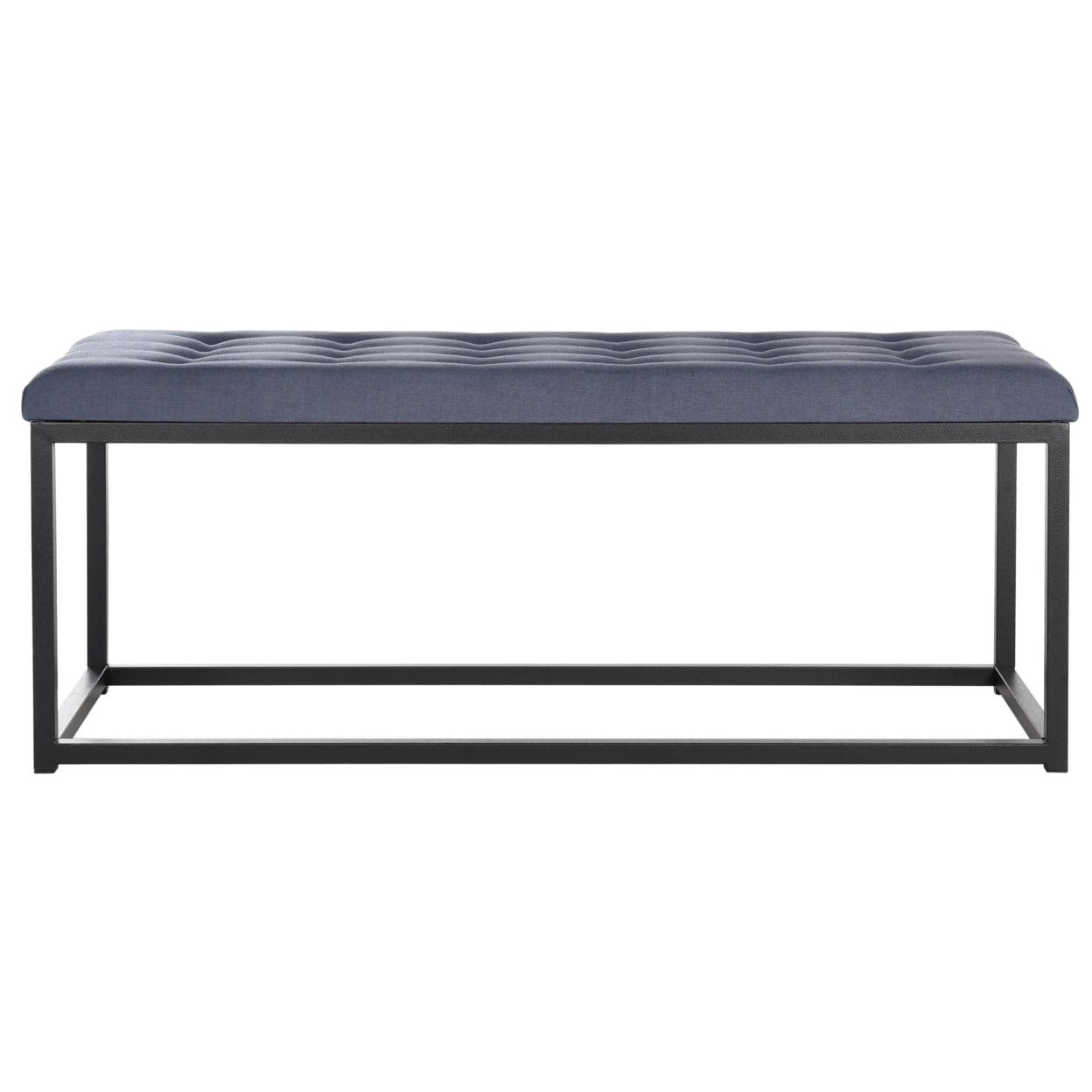 SAFAVIEH Reynolds Bench Navy / Black Graphic lines impart a designer look to the viewing bench, here with a navy tufted linen upholstered seat and black Parsons style legs. Universal in appeal, it adapts to industrial chic, contemporary or transitional spaces, from entry hall to bedroom.