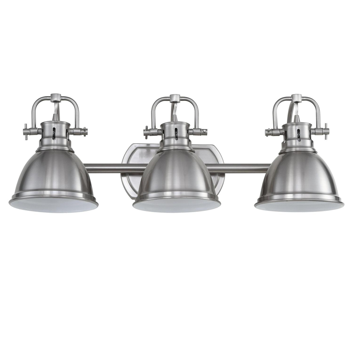 A perfect blend of form and function, this classic three-light bathroom sconce is an investment for the bathroom. Constructed with the strength and durability of metal, its bright, timeless nickel finish complements any décor. It s a designer favorite.- Contemporary design adds a chic look to your home