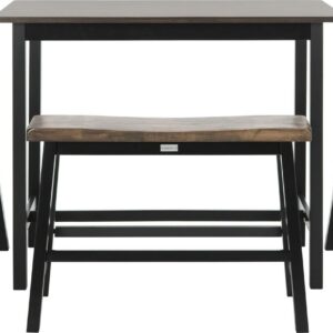 The transitional Ronin 4-piece pub table set is the ideal addition to kitchen, studio apartment, family room or entertainment room. Crafted from sturdy Malaysian Oak with rich dark espresso finish, it features a table, two low profile barstools and coordinating bench. As a bonus, use it for extra counter space for service during buffets and parties. Assembly required.