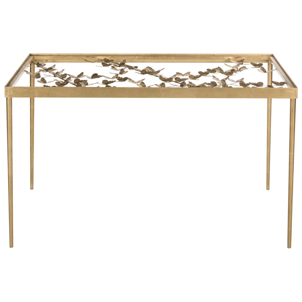 SAFAVIEH Rosalia Butterfly Desk Gold / Clear This butterfly desk was inspired by a handcrafted piece created by master goldsmiths for an Italian princess Tuscan estate. Ethereal and timeless, this modern heirloom s antique gold finish and sculptural detail bring visual splendor to any d cor.
