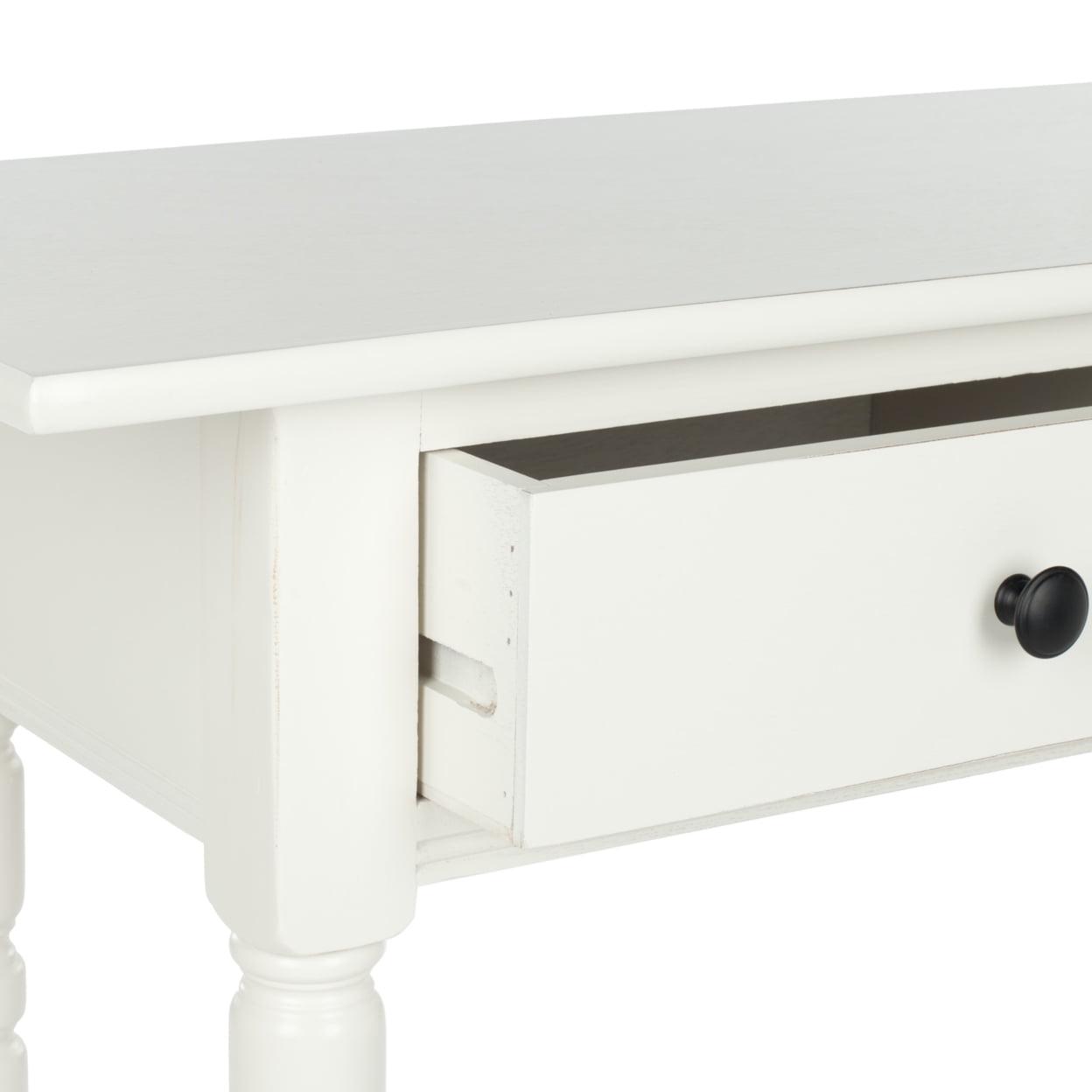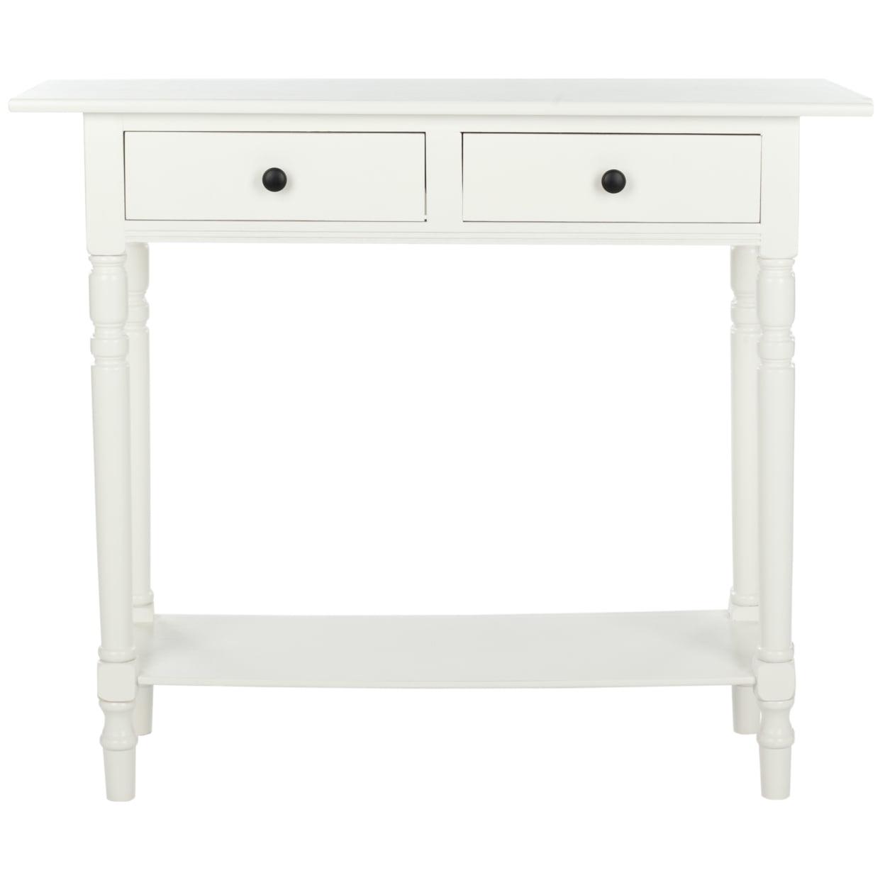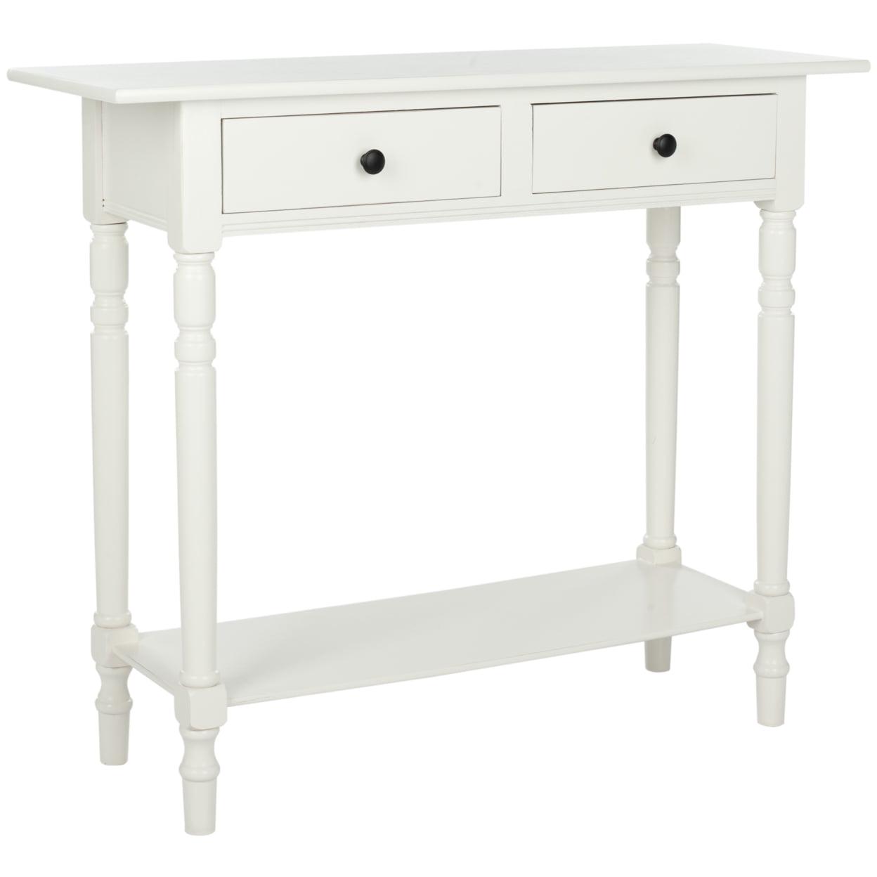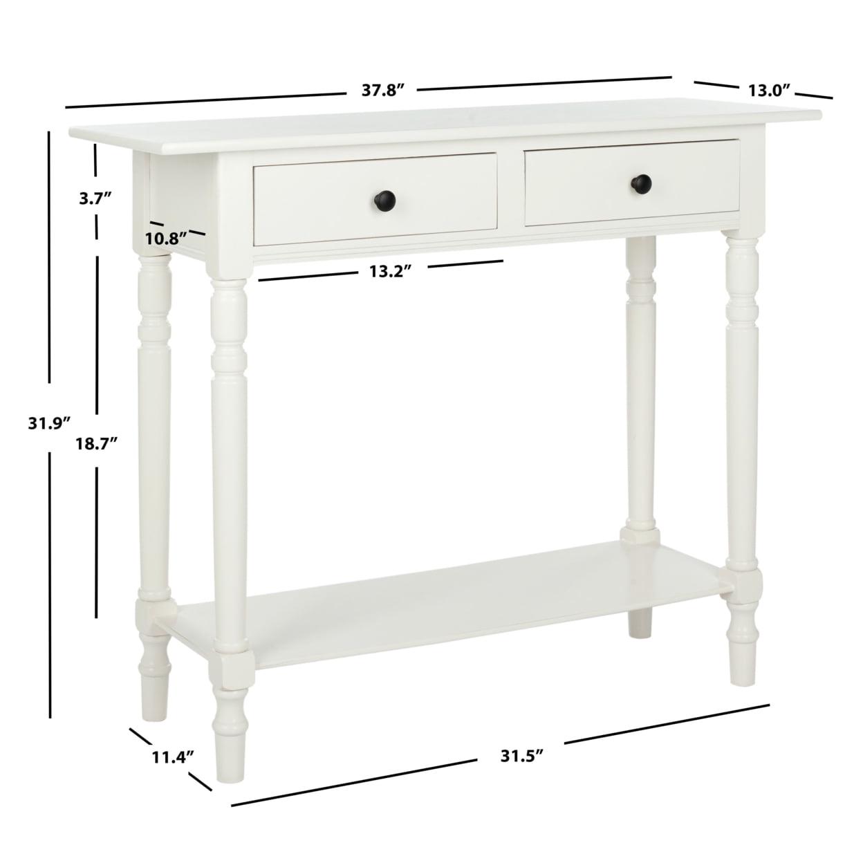 SAFAVIEH Rosemary 2-Drawer Console Table Distressed Cream Traditional good taste is beautifully transformed for today’s classic-contemporary interiors in this romantic Rosemary Console Table. A dark cherry finish perfectly highlights Rosemary’s turned spindle legs, while two drawers and a lower shelf provide ample storage and display in any room.