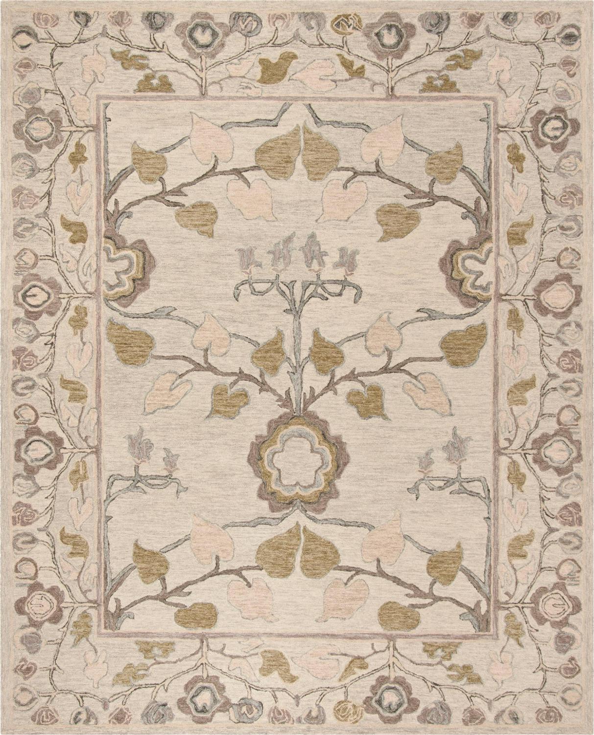 SAFAVIEH Roslyn Lennart Traditional Floral Wool Area Rug, Light Grey/Multi, 8′ x 10′