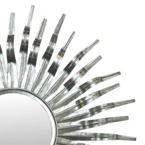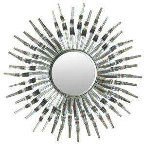 – The carefully wrought iron rays some with angled tips of this 37-inch wide mirror add yet aNther layer of dimension to this dramatic statement piece