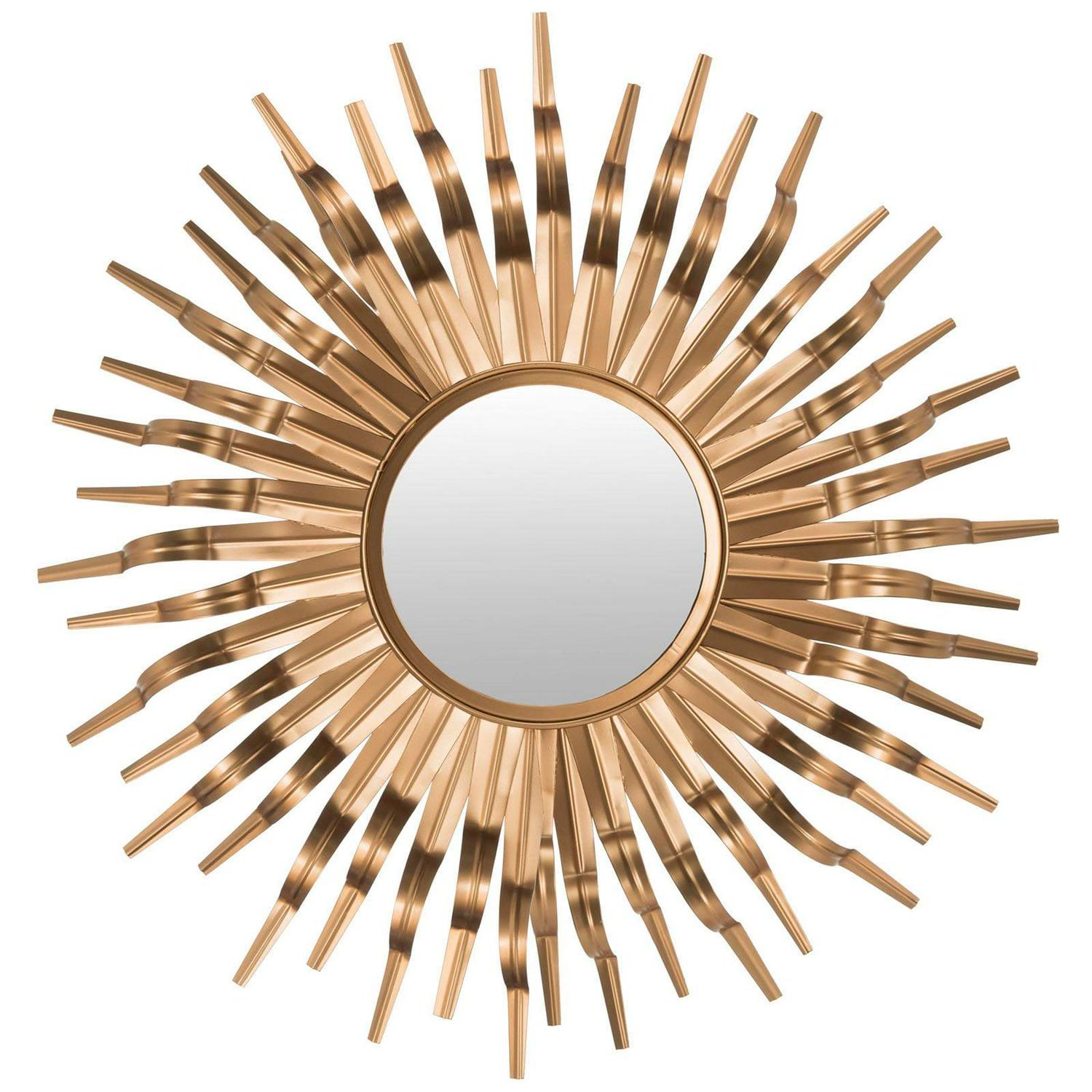 The Safavieh Sun Wall Mirror – 37W x 37H in. brightens up any decor. This mirror features a striking metal sun frame that adds an artful touch to your wall. Its center mirror offers functional beauty, while the frame is available in your choice of available color options.