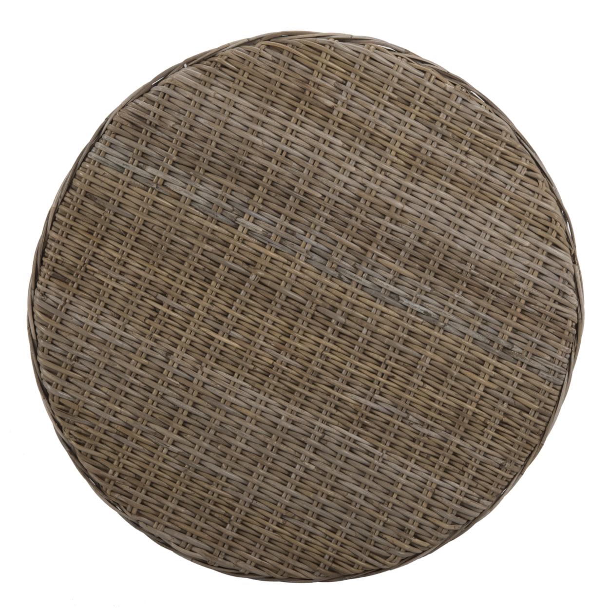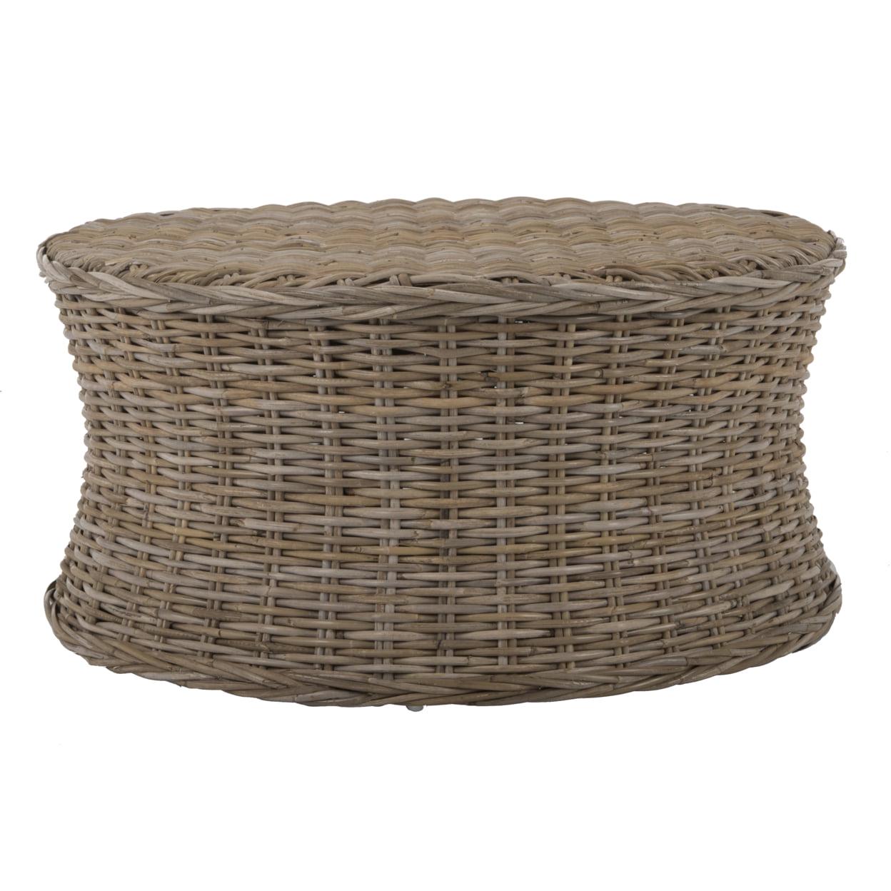 SAFAVIEH Ruxton Coffee Table Natural Bring the outdoors in with the woven rattan Ruxton Cocktail Ottoman, a transitional design that adapts to any decorating style from traditional to contemporary. With its low profile, concave form, and natural organic tone, Ruxton can be styled as a coffee table or cleared for use as extra seating or a footrest.