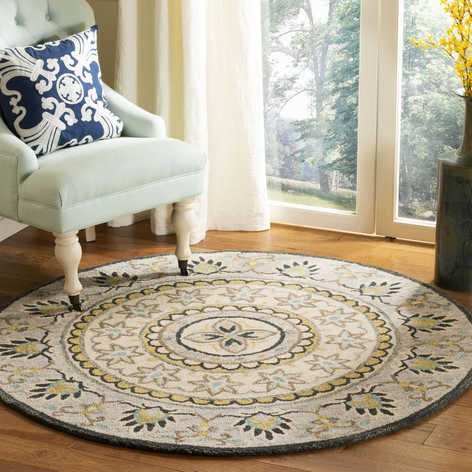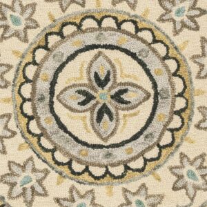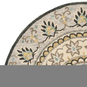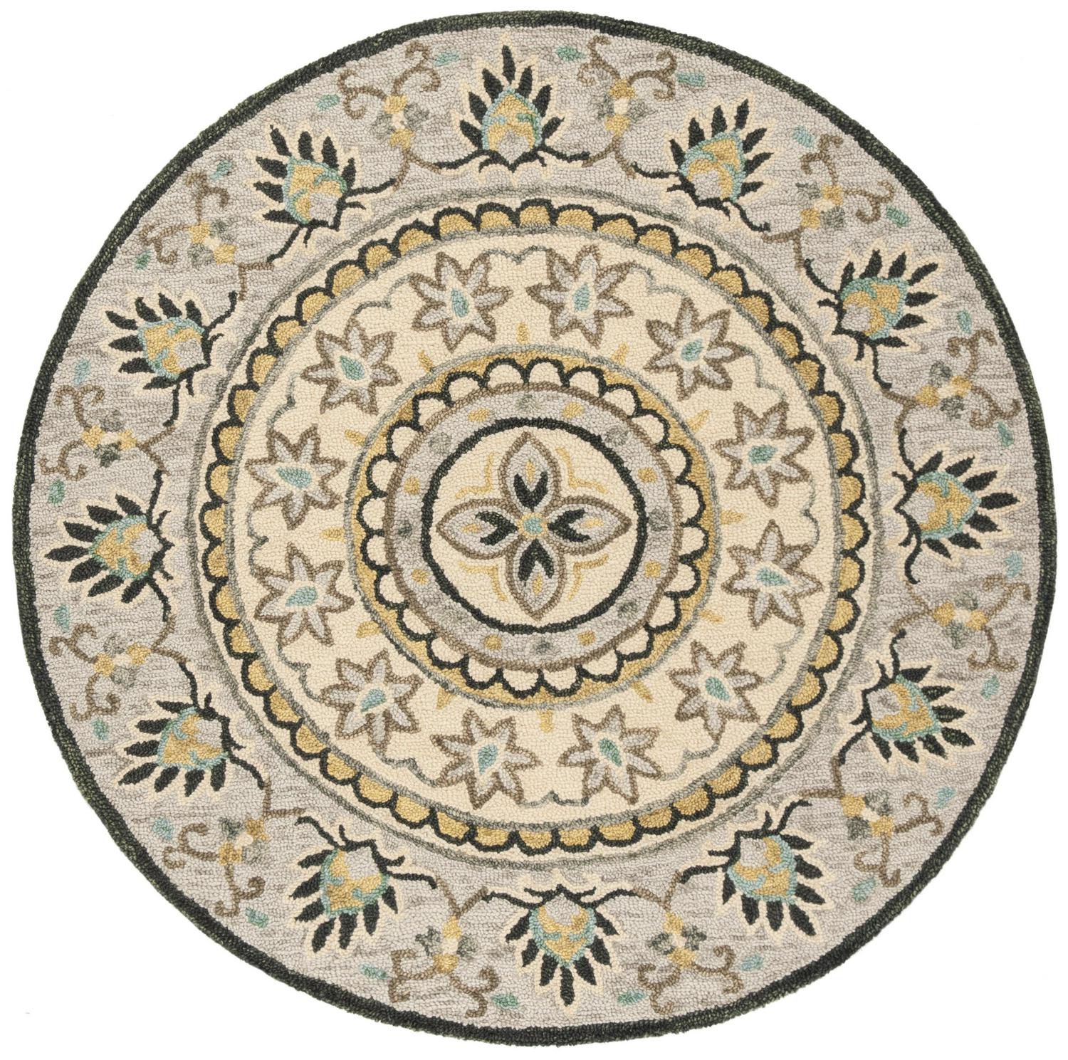 SAFAVIEH Novelty NOV606F Handmade Ivory / Grey Rug The Novelty Collection displays creatively styled area rugs with eye-catching motifs, bold colors and a thick wool pile. These craft-art inspired floor coverings come wide range of sizes and designs that are ideally suited as kitchen rugs and decorative accents for the den, the hallway or children s playrooms. Novelty rugs are hand tufted using pure soft wool with a cotton backing for a cushioned feel underfoot. Rug has an approximate thickness of 0.5 inches.