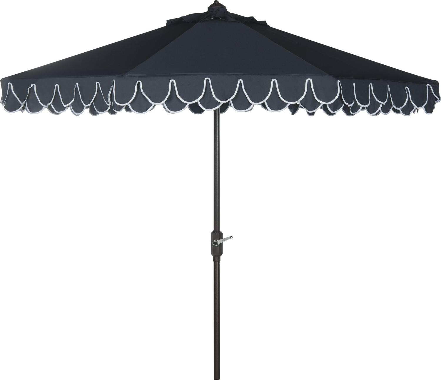 SAFAVIEH Outdoor Collection Elegant Valance 9-Foot Tilt Umbrella Navy / White Offering a second home to jetsetters and cinema stars, a legendary beachside resort at Cannes inspired this elegant umbrella. Its petal valance finished in crisp navy and white, it recalls the inimitable red carpet glamour of the Cote d Azure.