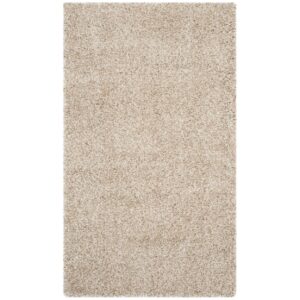 SAFAVIEH Santa Monica Chelsey Solid Shag Runner Rug, Beige, 2’3 x 11′