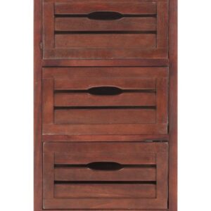 The classic lingerie chest is treated to a breezy coastal makeover with the Sarina 5-drawer cabinet. Crafted of pine with cherry finish, the British Colonial frame is updated with open handles and slatted drawers inspired by old-fashioned fruit crates.