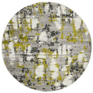 SAFAVIEH Skyler Collection SKY193G Grey / Green Rug Contemporary decor style is superbly displayed in the voguish colors and smooth texture of the Skyler Rug Collection. Featuring a smart montage of patterns ranging from mod geometrics and dreamy abstracts to florals and classic medallions, Skyler turns familiar imagery into fashion-fabulous interior design. Rug has an approximate thickness of 0.35 inches.
