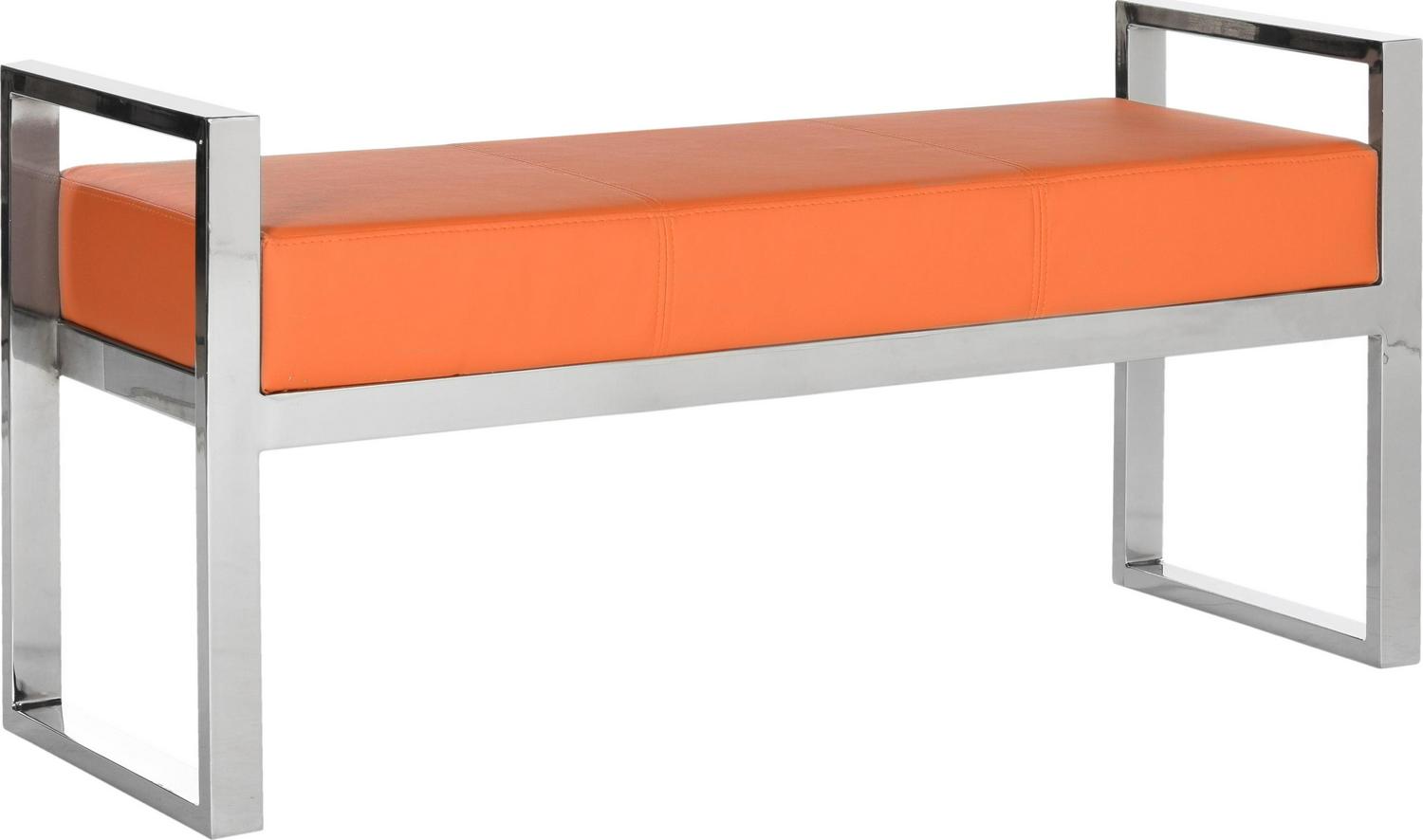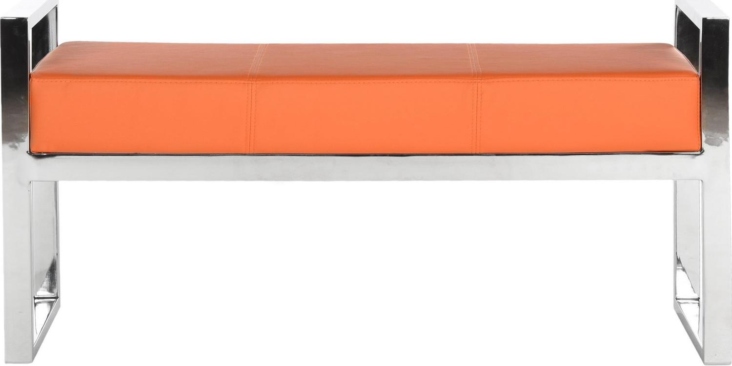 SAFAVIEH Slade Modern Glam Upholstered Rectangular Bench, Orange/Chrome
