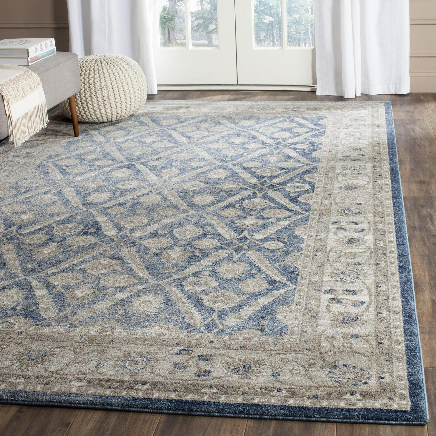 SAFAVIEH Sofia Jerrod Floral Bordered Area Rug, Blue/Beige, 9′ x 12′
