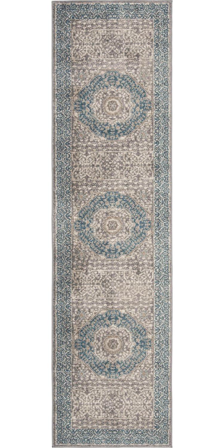 SAFAVIEH Sofia Waylon Geometric Bordered Runner Rug, Light Grey/Blue, 2’2 x 18′