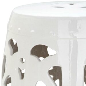 – An over-scale pierced cutout creates a bold contemporary statement in the Stencil Blossom garden stool. With a design inspired by the Asian motif symbolizing prosperity, this stool doubles as a side table.