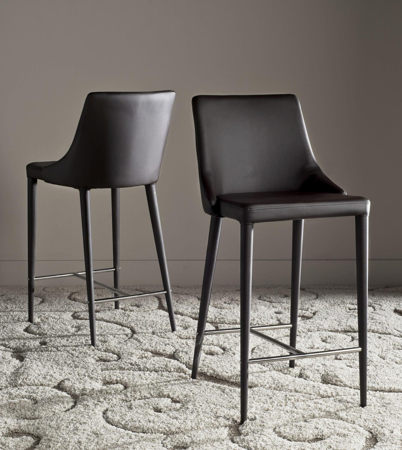 Posh perch. Counter service has never been more chic thanks to these designer-inspired brown leather counter stools. Refined and defined, the sleek stools are crafted with PU leather and sturdy iron, and ideal for the open concept contemporary home.