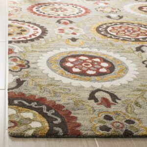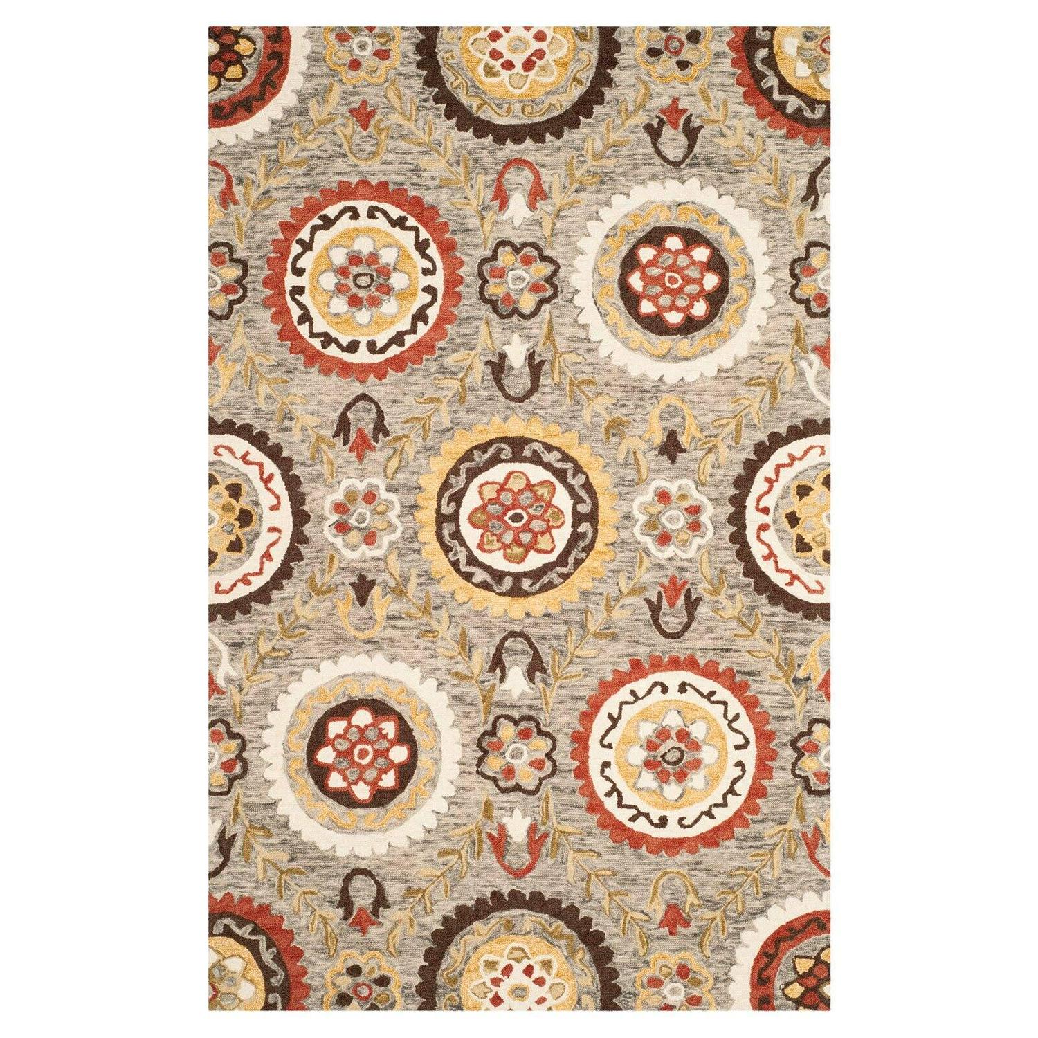 SAFAVIEH Suzani Iskra Medallion Wool Area Rug, Grey/Multi, 5′ x 8′