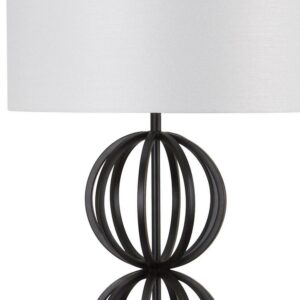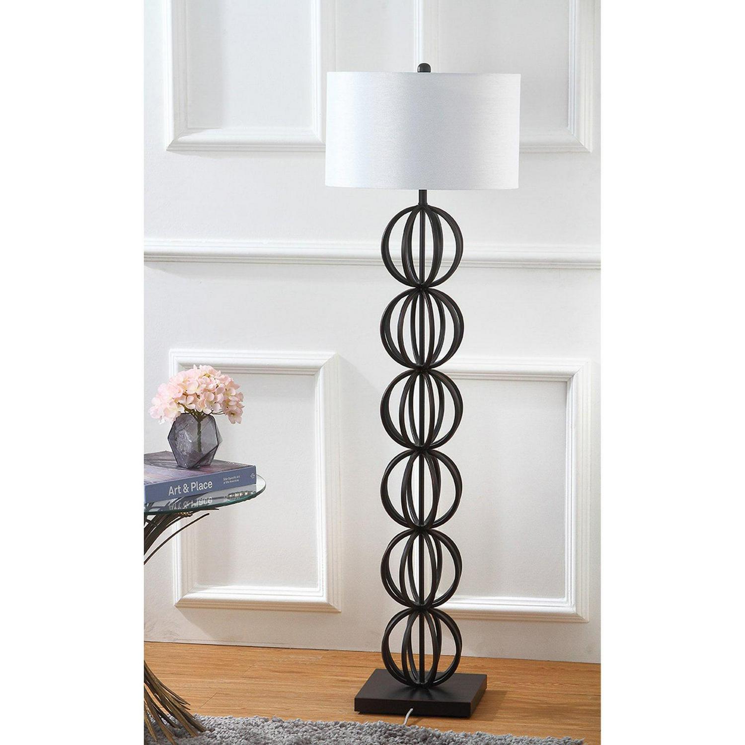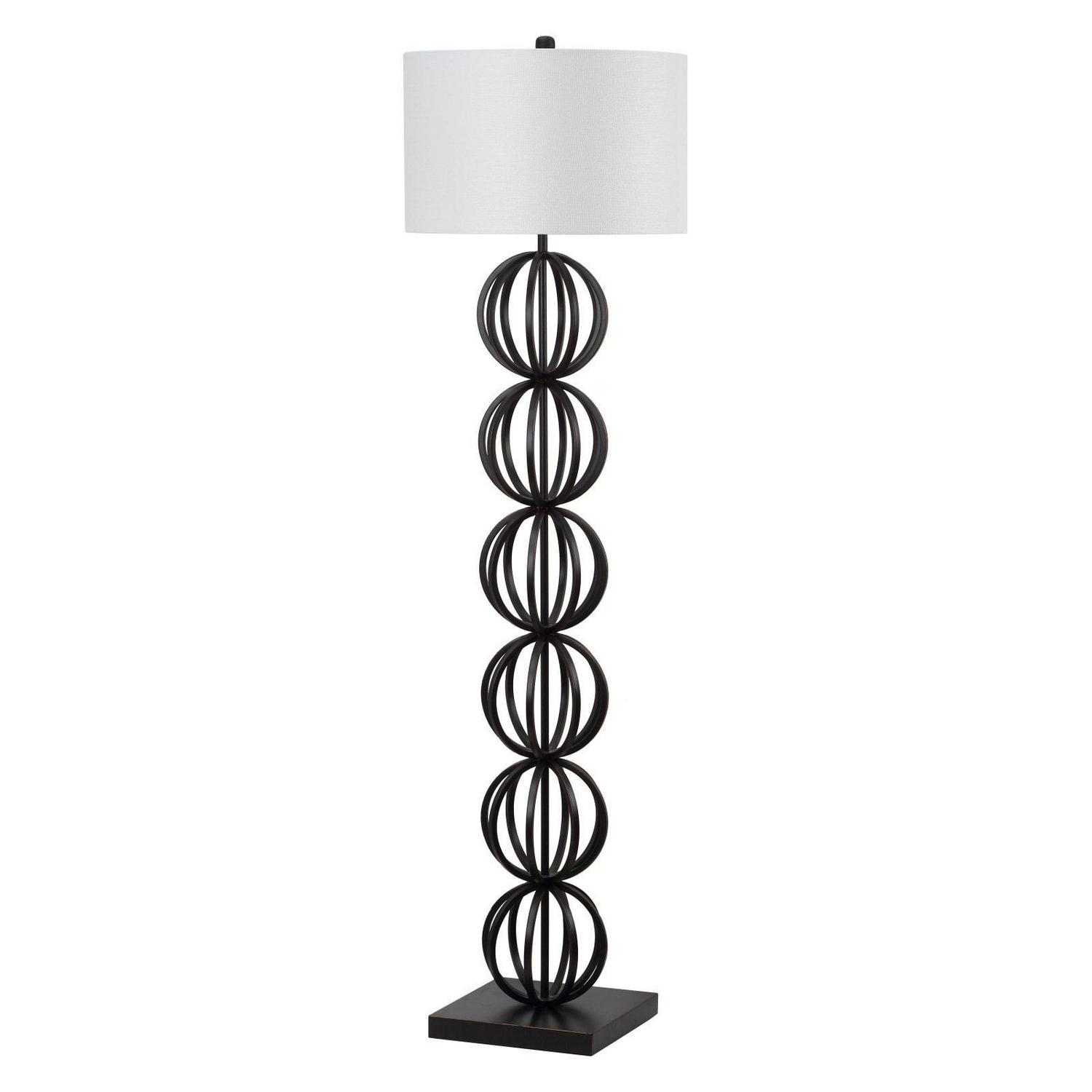 SAFAVIEH Suzie Sphere Floor Lamp | Black | Seven black metal orbs for a curving and graphic motif in the transitional Suzie Sphere Floor Lamp. With its white textured cotton drum shade, Suzie makes a strong statement when used in pairs in any room, or as a reading light beside a cozy armchair. Begin your rug, furniture, lighting, outdoor, and home decor search and discover over 100,000 SAFAVIEH products today.