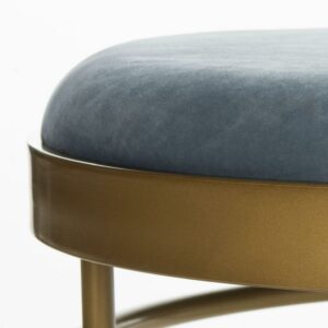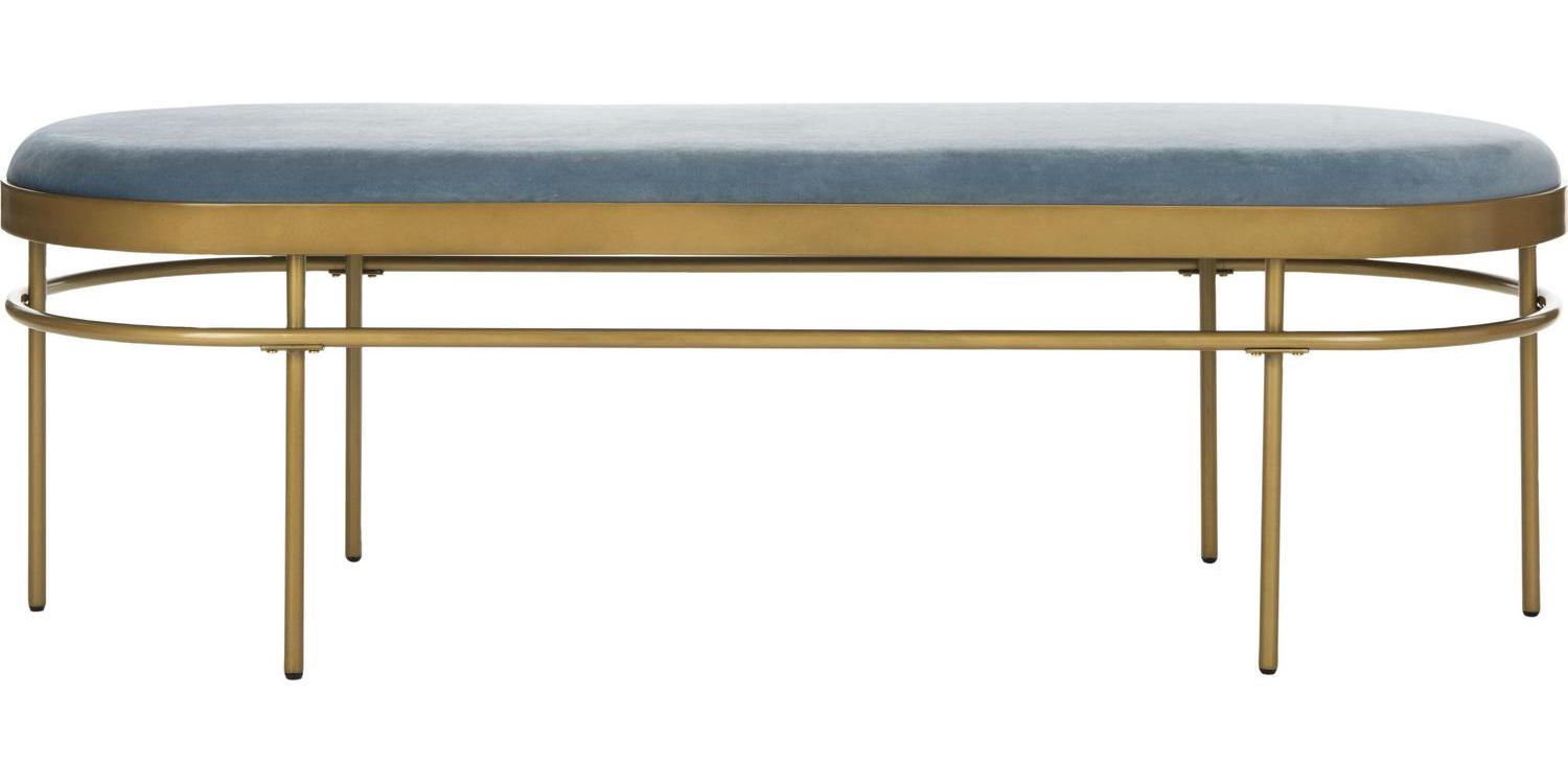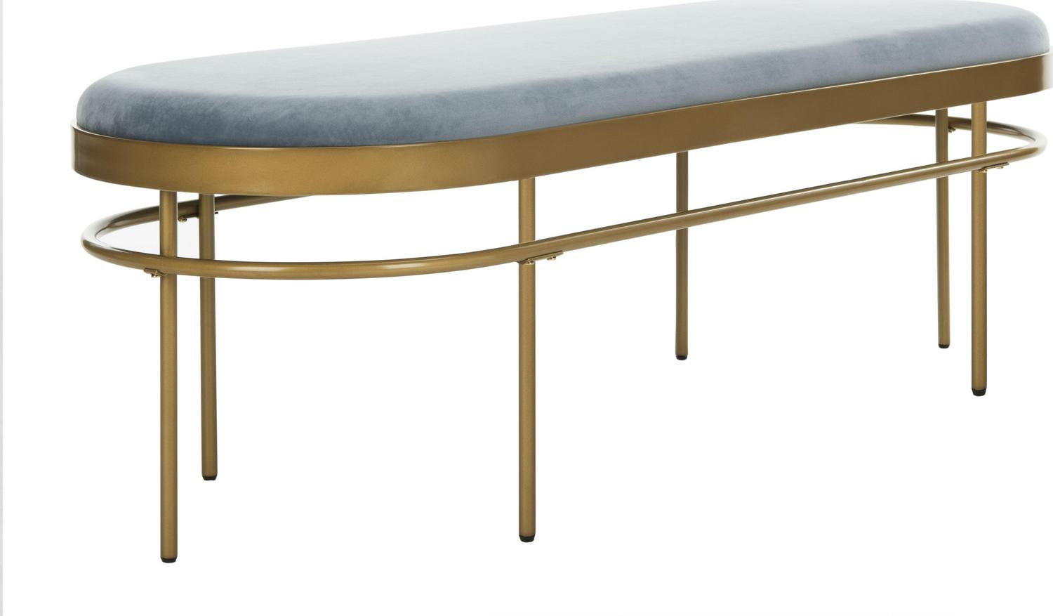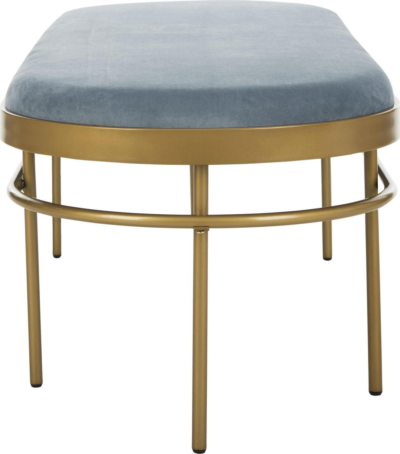 Transform any living room with this luxurious contemporary oval bench. Inspired by the glamour of vintage Italian design, its plush slate blue velvet upholstery complements its dramatic gold metallic finish.- Contemporary design adds a chic look to your home