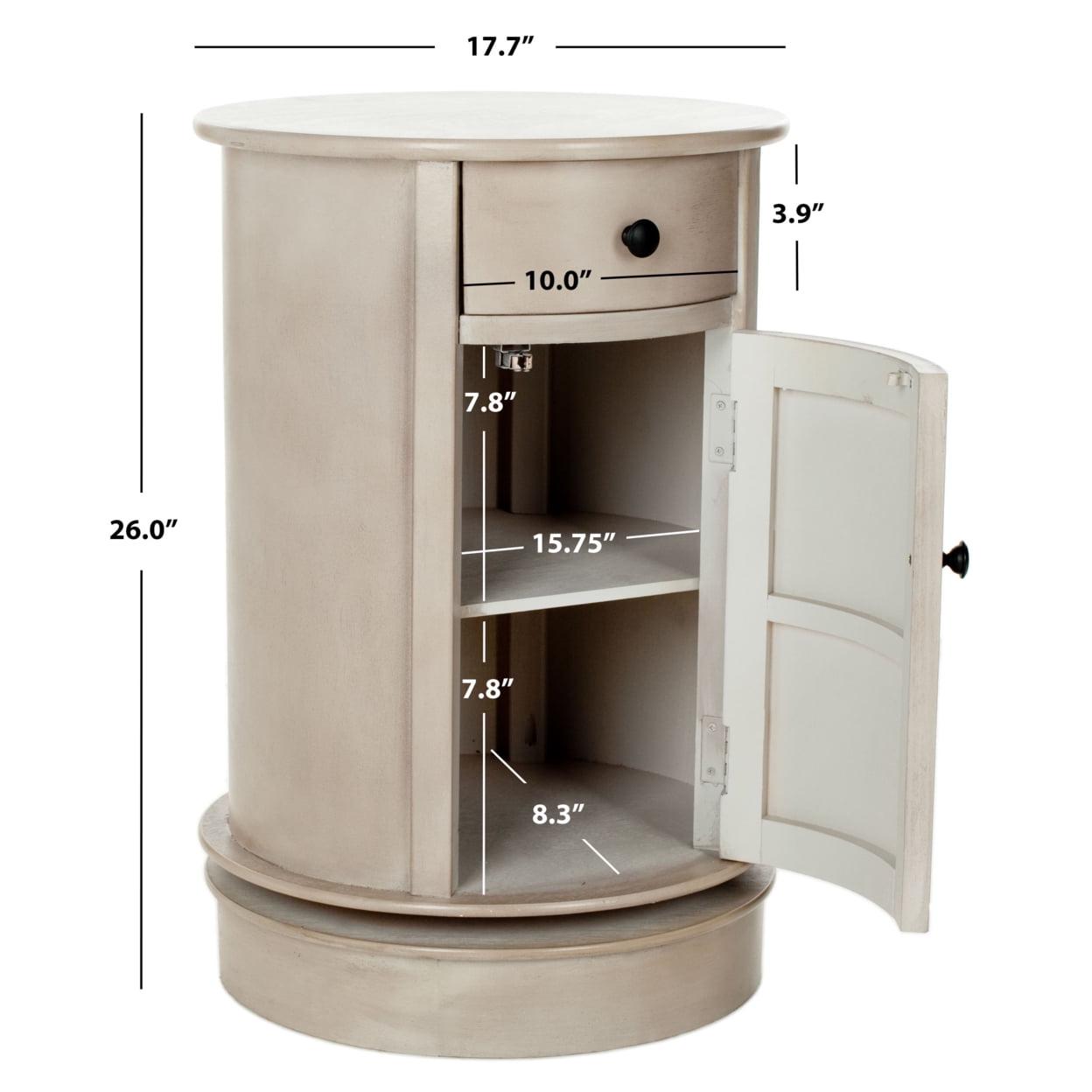 SAFAVIEH Tabitha Swivel Accent Table Vintage Grey The Tabitha Swivel Accent Table redefines rustic farmhouse charm for today’s classic contemporary d cor. With its single drawer and two shelf cabinet in a vintage grey finish, Tabitha makes for discrete and stylish storage in the family room or country cottage kitchen.